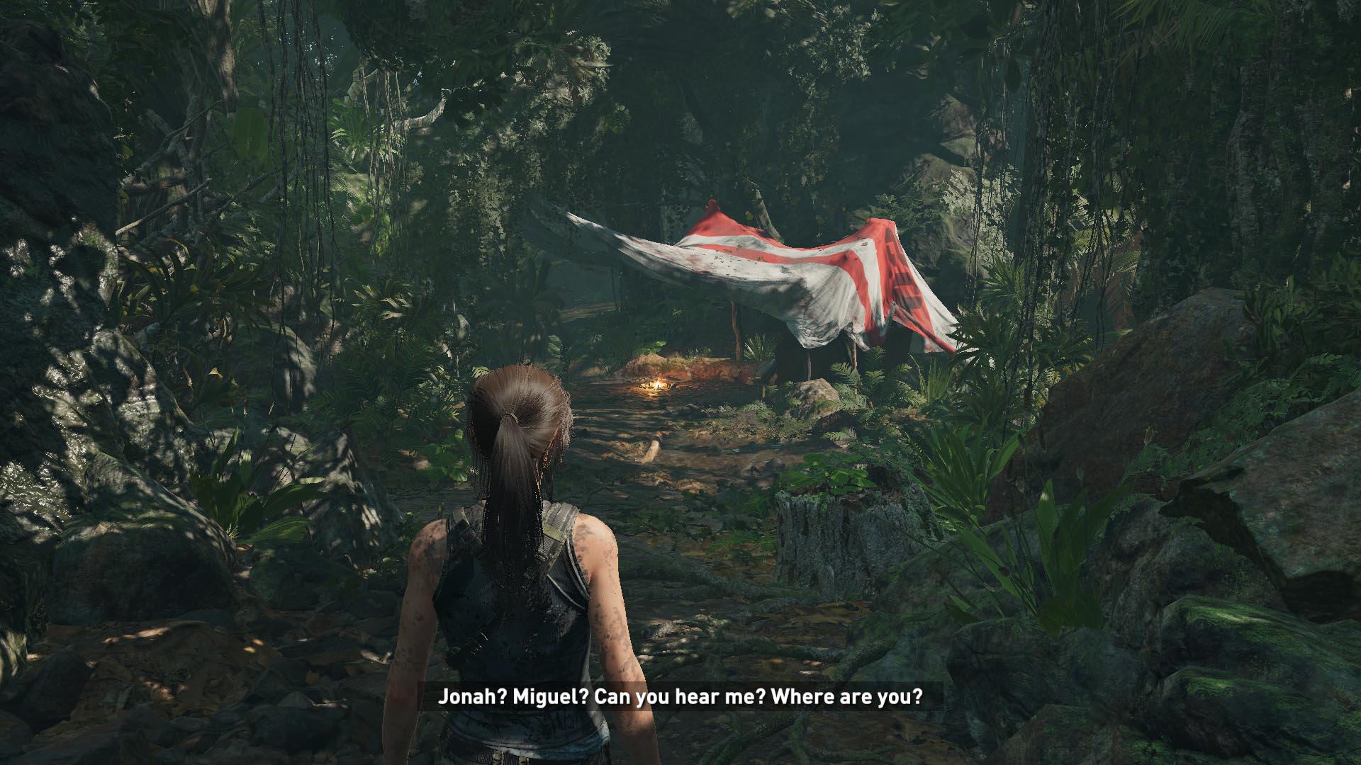 Jobbra menj a sziklaösvényen, ugrás a faágra, vedd fel a tojásokat a fészekből, majd ugrás a szemközti sziklára. Menj lefelé a fatörzsön, és a kiálló ágról ugorj a másik ágra, a végén pedig lecsúszol a sárba. Egy táborhoz érkeztél. Előtte menj jobbra, és egy kis ládából egy zsebkendőt vehetsz ki, ez az 1. relikvia.