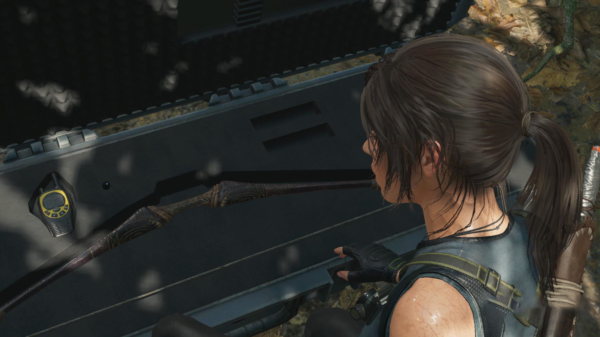 A jármű alatt másztok előre, majd újra gyilkoltok. Szedj össze mindent a hulláktól, és menj a túloldali teherautó mögött jobbra a sziklára felkapaszkodva.
