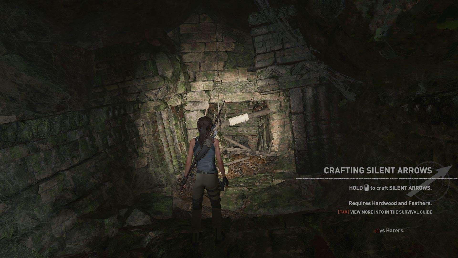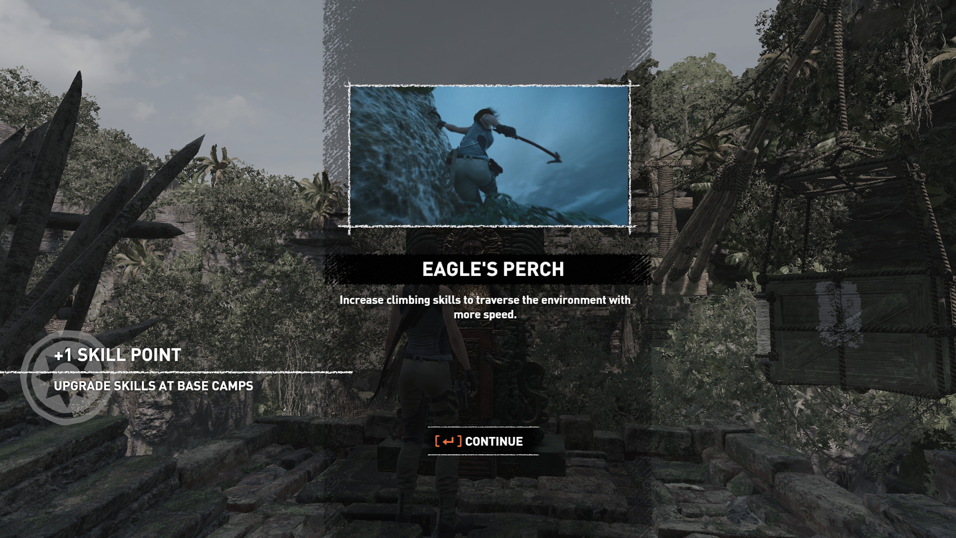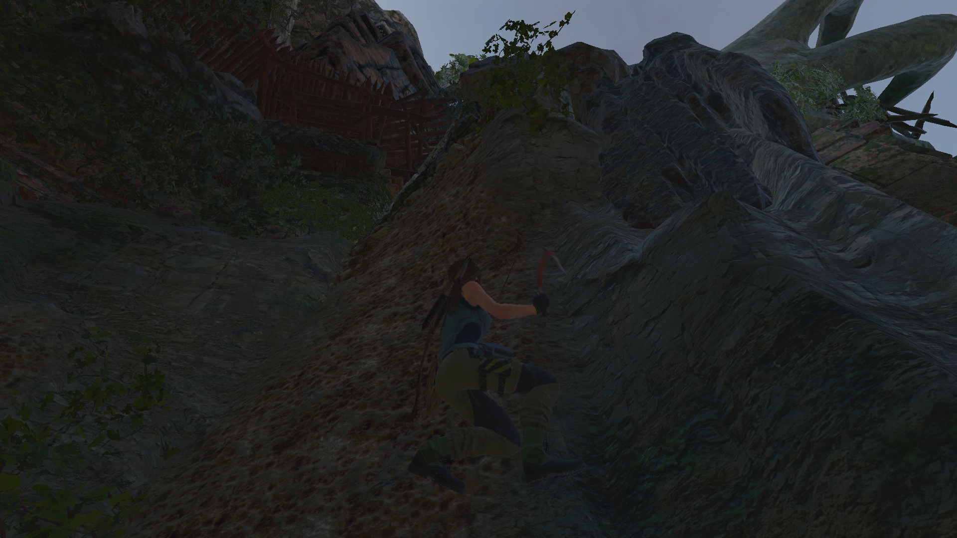 Lőj egy kötelet a szemközti lejjebb levő folyosóra, csússz át, és most már átmehetsz az áttört falon. kapaszkodj fel a falon, majd a következőn, és csússz le a kötélen. Lecsúszás után ugrás a falra, majd jobbra a másikra, mássz feljebb, majd balra ugorva eljutsz egy kis ösvényre. egyensúlyozz át a fatörzsön, ugrás a faágra, majd a következőre, onnan a fára, és annak ágán keresztül jutsz le egy sziklaplatformra. Köteles csáklyával ugrás a szemközti falra, ott is a következőre, ahonnan a kötéllel ereszkedsz le az alattad levő ösvényre. Kiértél a bejárathoz.