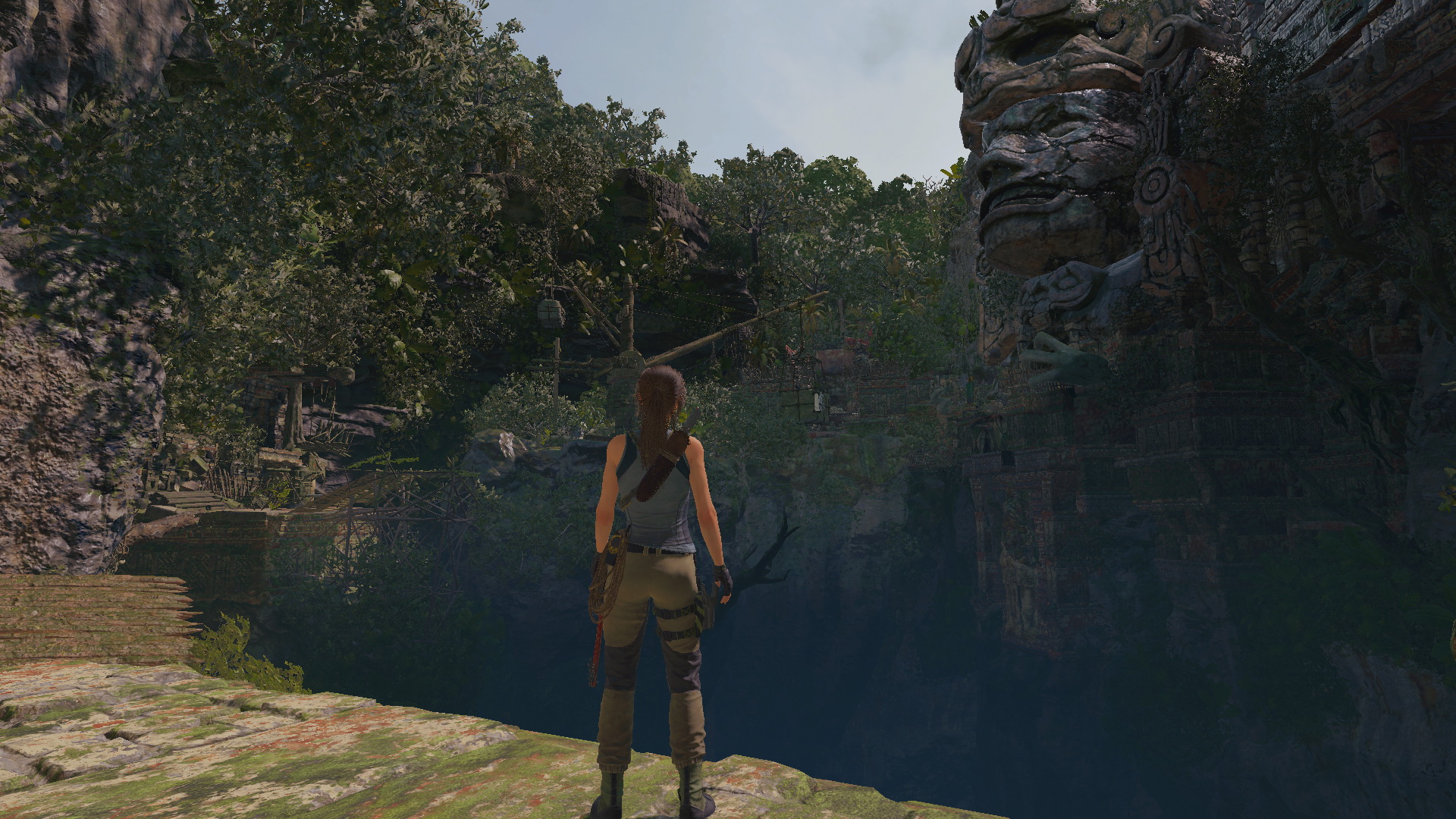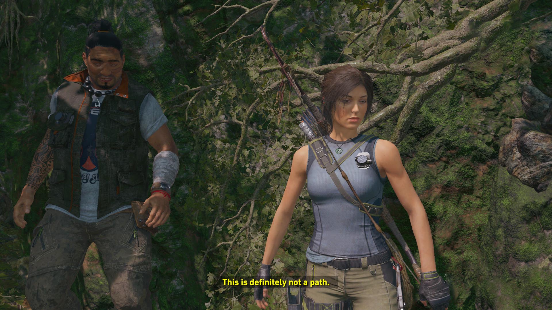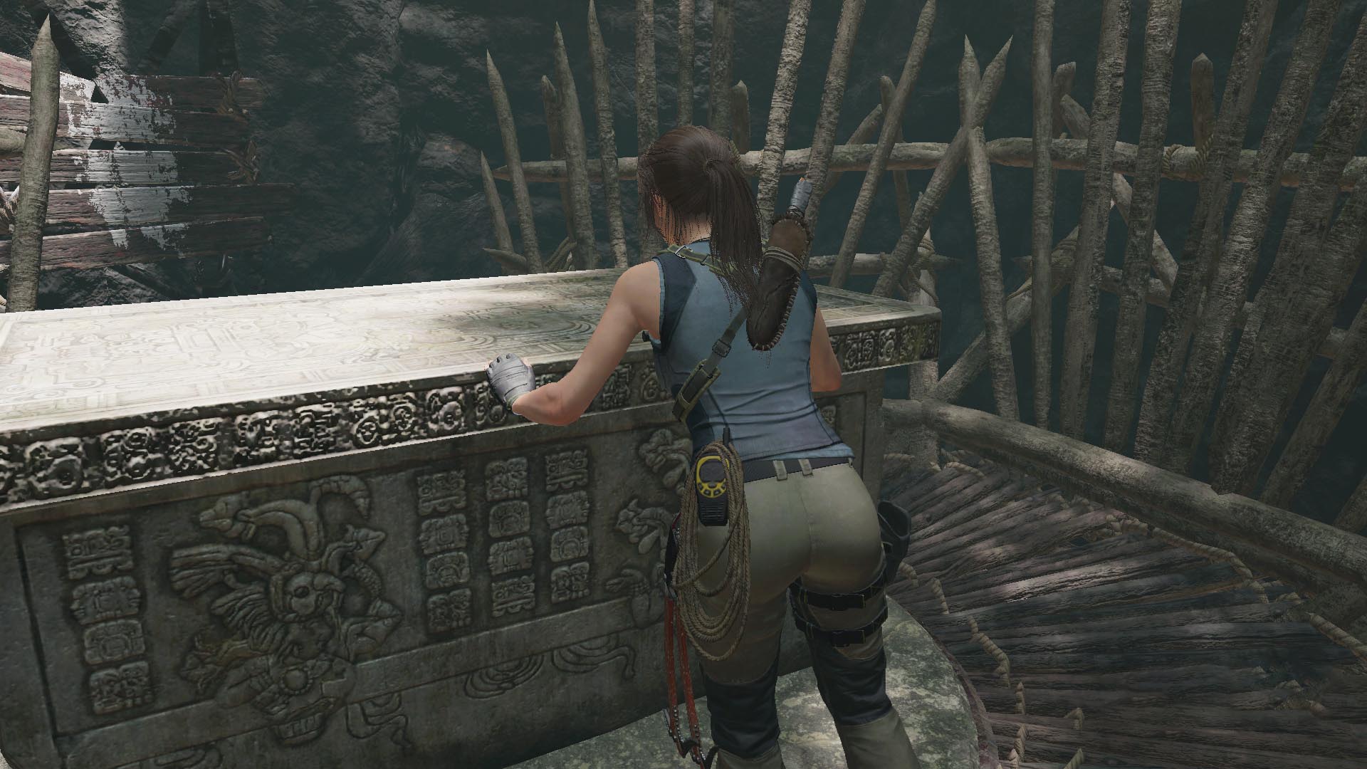 Lőj egy kötelet a szemközti lejjebb levő folyosóra, csússz át, és most már átmehetsz az áttört falon. kapaszkodj fel a falon, majd a következőn, és csússz le a kötélen. Lecsúszás után ugrás a falra, majd jobbra a másikra, mássz feljebb, majd balra ugorva eljutsz egy kis ösvényre. egyensúlyozz át a fatörzsön, ugrás a faágra, majd a következőre, onnan a fára, és annak ágán keresztül jutsz le egy sziklaplatformra. Köteles csáklyával ugrás a szemközti falra, ott is a következőre, ahonnan a kötéllel ereszkedsz le az alattad levő ösvényre. Kiértél a bejárathoz.