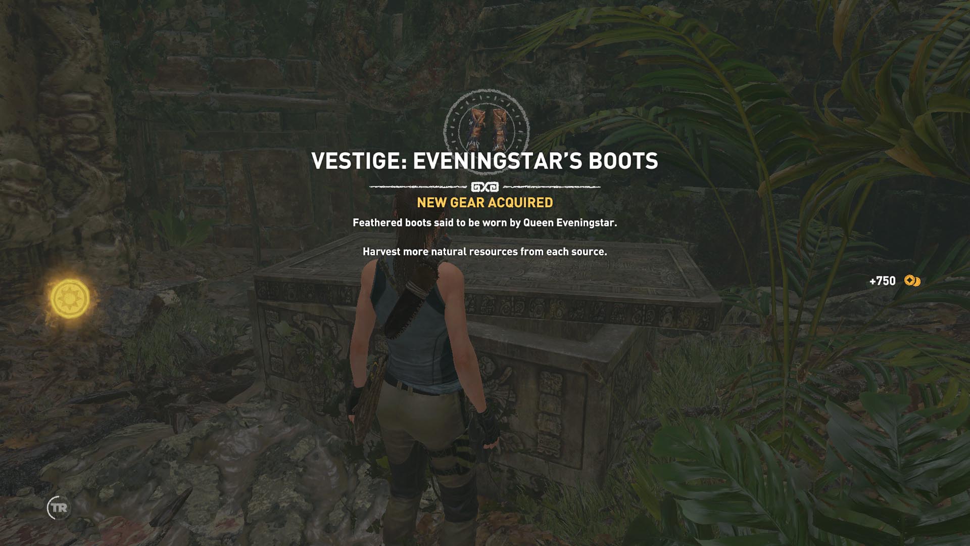 Menj tovább, balra a repülőgéproncshoz, és törd le a propellerét. Az beleesik a vízbe, így utána kell ugranod. Mielőtt megszereznéd, megtámad egy muréna, szerencsére a letört darabbal végezni tudsz vele, a képernyőn megjelenő gomb gyors megnyomkodásával. Szedd össze a vízi növényeket, négy is van belőle, majd mássz a partra. Menj tovább, gyűjts be, amit lehet, majd egy barlangba bemenve megtalálod a 1. dokumentumot, a Harc a hatalomért jegyzetet. Kimenve, a parton XP-t áshatsz ki 9/1. Ugrás le a vízhez, menj jobbra, kutasd ki a hullát, majd vedd fel a fészekből a tojásokat, és egyensúlyozz át a kiálló fatörzsön. Ugrás a faágra, és gyújtsd be a kék virágokat. Ez egy kihívás, 5 kell belőle. ez a 5/1. Irány vissza a fatörzsön át, és a másik irányba menve, fel tudsz mászni az egyik fára. A kék virágok 5/2. begyűjtése után ugrás a szemközti sziklára, és felmászva egy kis ládikában meg is van az 3.relikvia, a Szeksztáns. Irány visszafelé a faágakon, liánokon át, gyűjtsd be a virágokat, 5/3, 5/4. tojásokat, majd visszatérsz a földre, a köteles oszlophoz. Menj tovább az ösvényen, és a szikla alatt kiáshatod a következő XP-t 9/2.