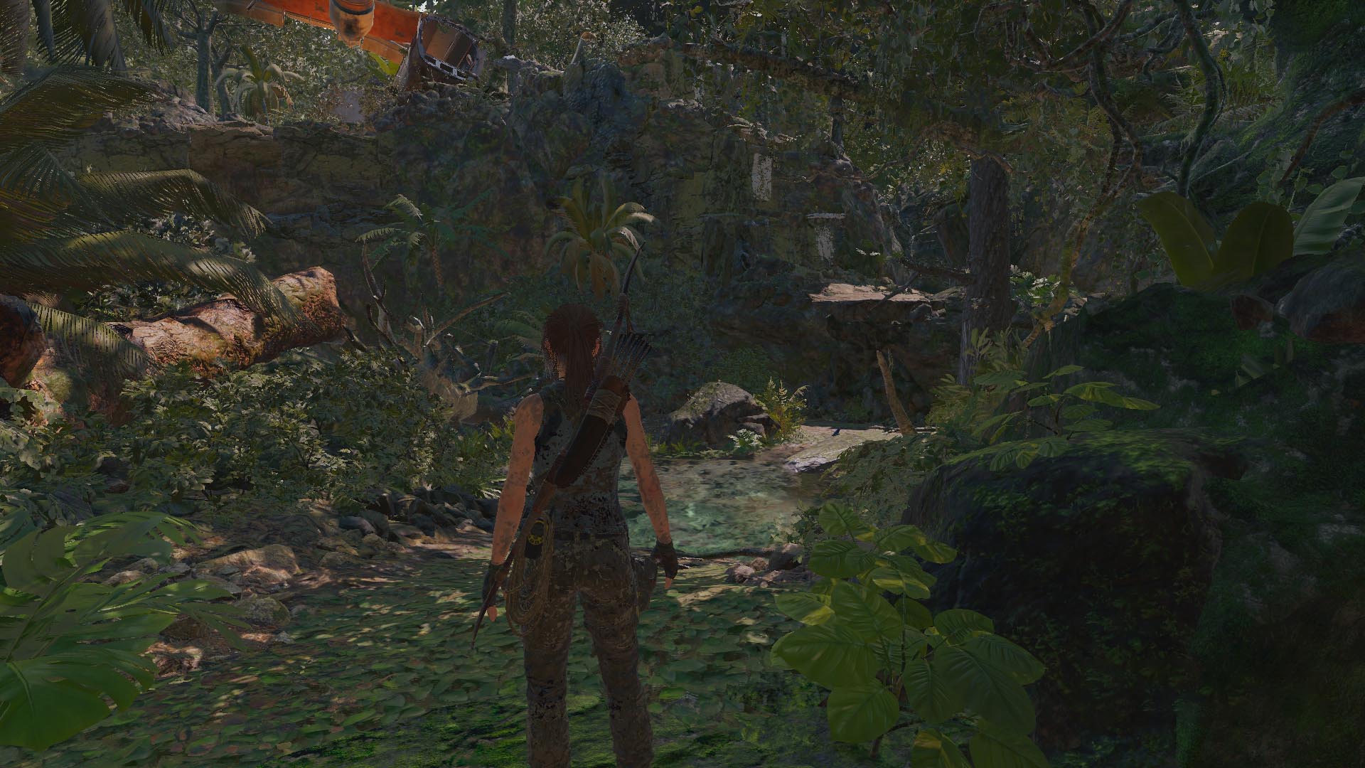 Balra fordulva, a szikla tövében XP-t áshatsz ki. 9/9. A liánon át jutsz el a szemközti sziklára, elmenve a tábor mellett. (Plane Wreckage) vadássz egy kicsit, majd a halálfejes sziklánál mássz fel, menj balra, be a vízbe, törd át a falat, és bújj át a résen.