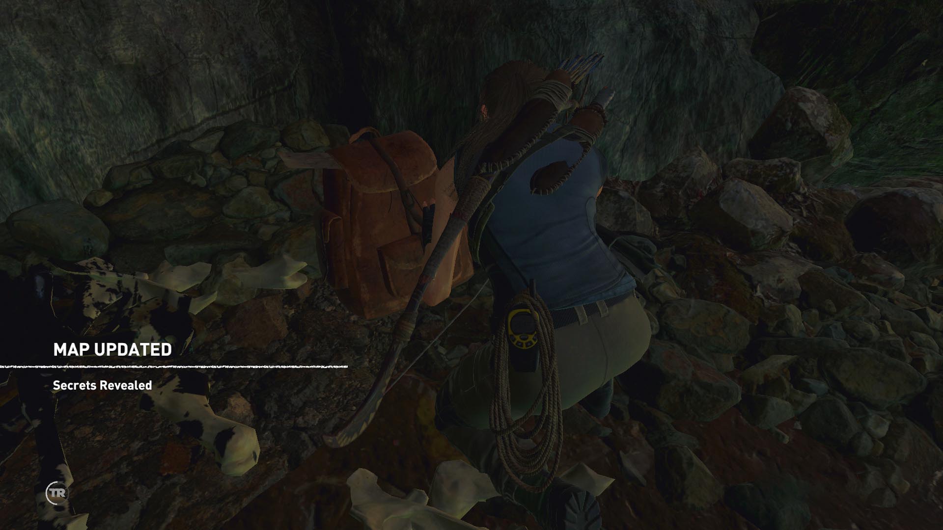 Menj be a tűz mellett a barlangba, egy sír lesz ez is. Mássz át az alacsony átjárón, felmászva egy ismeretlen területre értél. Menj az ösvényen, bújj át a csapda alatt, majd mássz fel a fára. ugrás a faágra, a sziklára, kapaszkodj balra, és ess le a lenti ösvényre. Vágd el a csapda kötelét, juss át rajta, és meg is találtad a 2. Felfedező hátizsákot is.2/2.