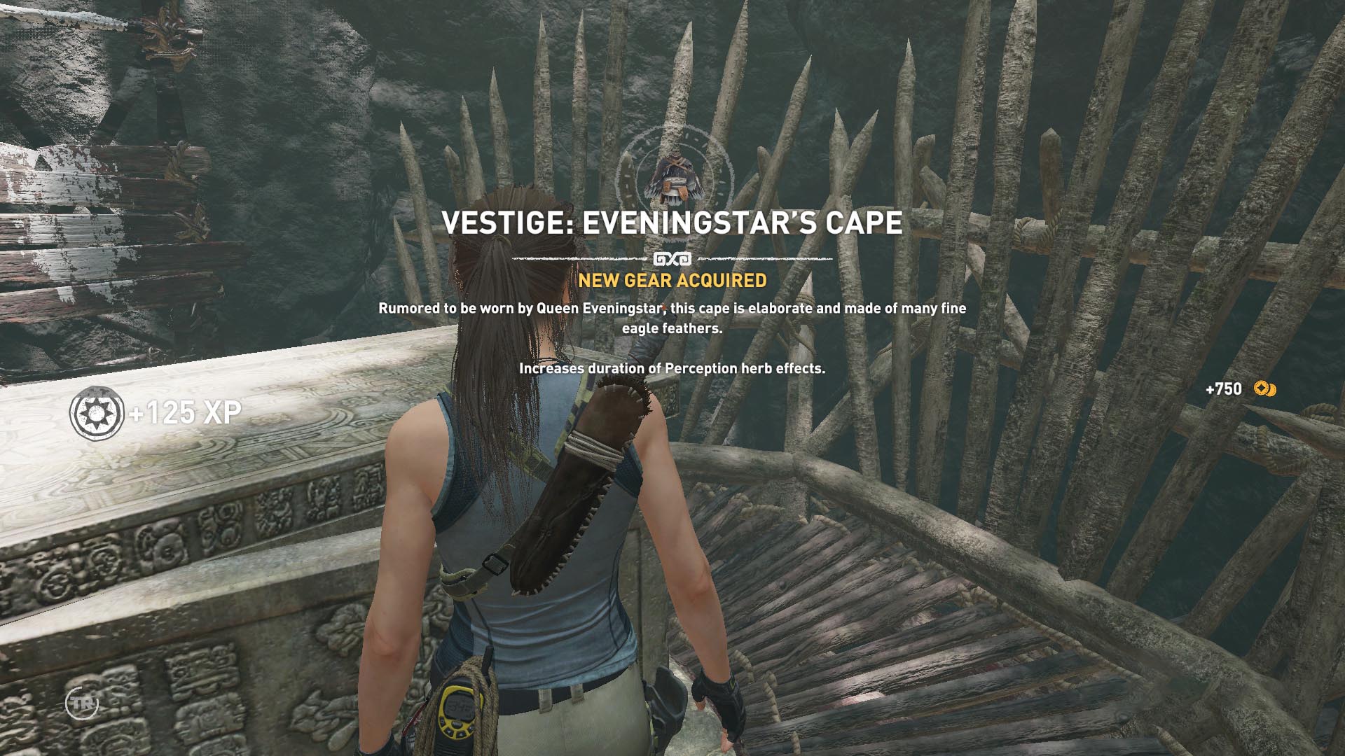 Menj ki, menj át balra a fatörzsön, húzd meg a forgató kart, lőj egy kötelet a szemközti részre, és mássz át rajta. Fel a sziklán, és húzd meg a vastag forgató kart. Ugrás a liftre, onnan ugrás az előbbi forgató karhoz. most húzz rajta egyet, és lőj egy kötelet a liftre. Ugrás a liftre, vissza a nagy karhoz, húzz rajta ismét egyet. Ugrás megint a liftre, így eljutsz n a romokhoz. lefelé menve megolvashatod az újabb szobrot, a 5. fali képet, az Alvilág kapu-ját. Ugrás a szemközti sziklára, majd leesve jobbra a másikra. ha lezúdult jobbra a szikladarab, gyorsan ugorj a jobb oldali sziklára, ott kapaszkodj fel teljesen. Köteles nyíllal tedd szabaddá az utat, Majd kijőve, lenyomva a szobron a reteszt megnézheted, és megkapod az Eagle's Perch tulajdonságot. A sír teljesítve.