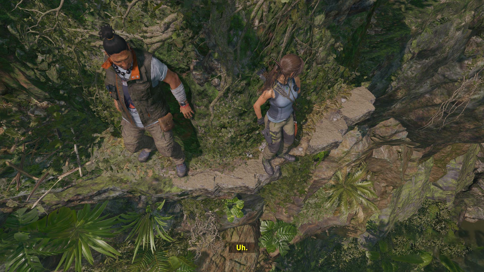 Menj le, majd fel a lépcsőn, tedd szabaddá a beugrót köteles nyíllal, vedd fel, ami bent van, majd ugrás az ágakon át a túloldali ösvényre. Szaladj át a fatörzsön, majd köteles csáklyával juss tovább, átjutva lecsúszol. Lőj kötelet a lenti ösvényre, csússz át oda, ess le az alsóbb részre, majd az ösvény végén ismét mássz fel a szűk résen a magasba. És tessék, megvan a Jónásod. :)
