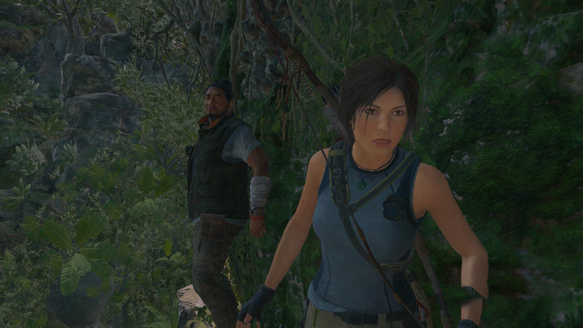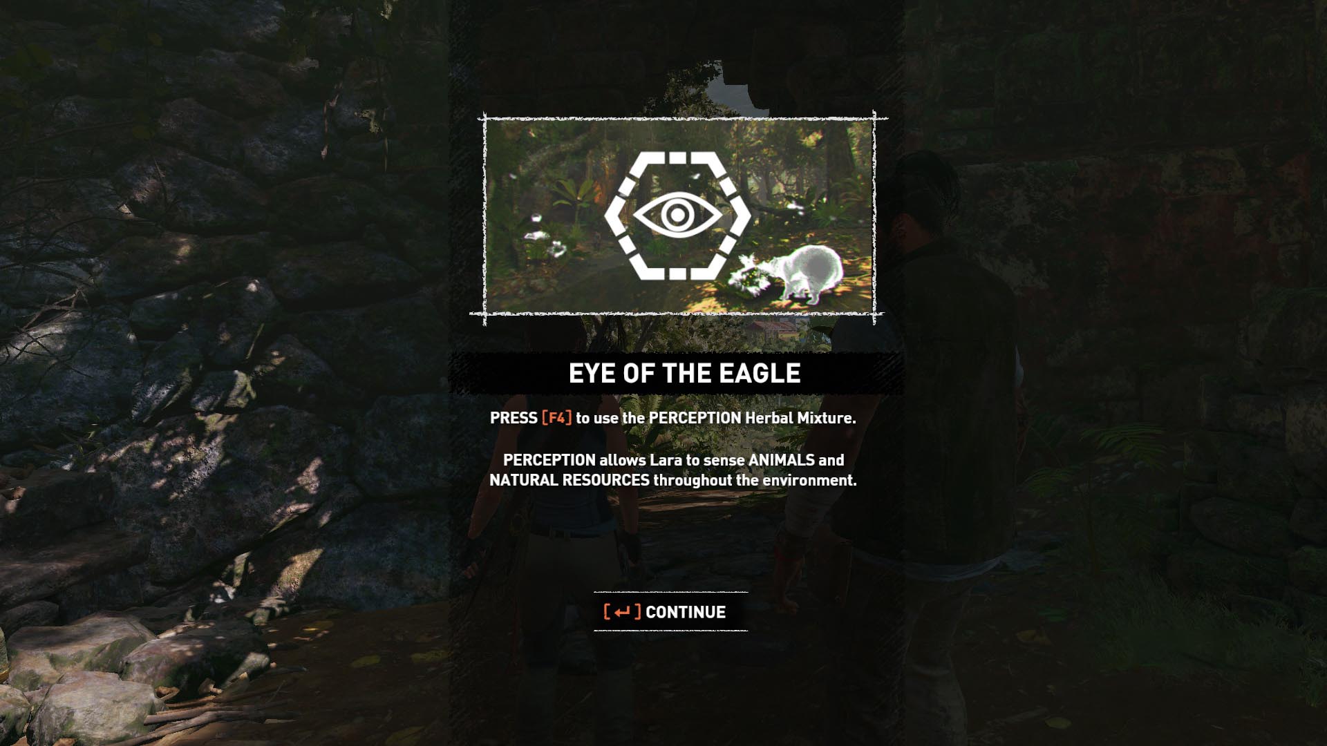 Itt már majmokra is vadászhatsz, nyersanyagot, bőrt begyűjtve. Tankolj fel nyíllal mert sokra lesz szükséged. (PC-n lenyomva tartsd a bal egérgombot) Bújj át a fatörzsek közötti résen, mássz fel a sziklán, majd lecsúszva harc következik. Lődd le folyton mozogva a jaguárt, kell neki jó pár lövés. De rád támad a másik is, azt a képernyőn látható gyors billentyűparanccsal, majd a késeddel ölöd meg.