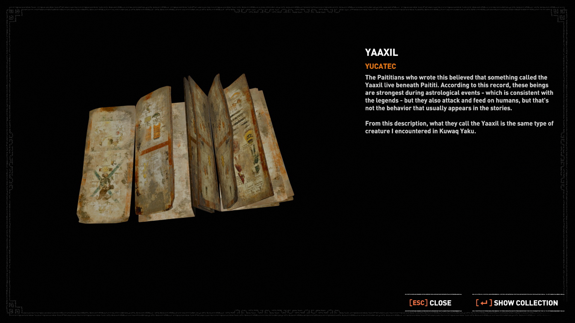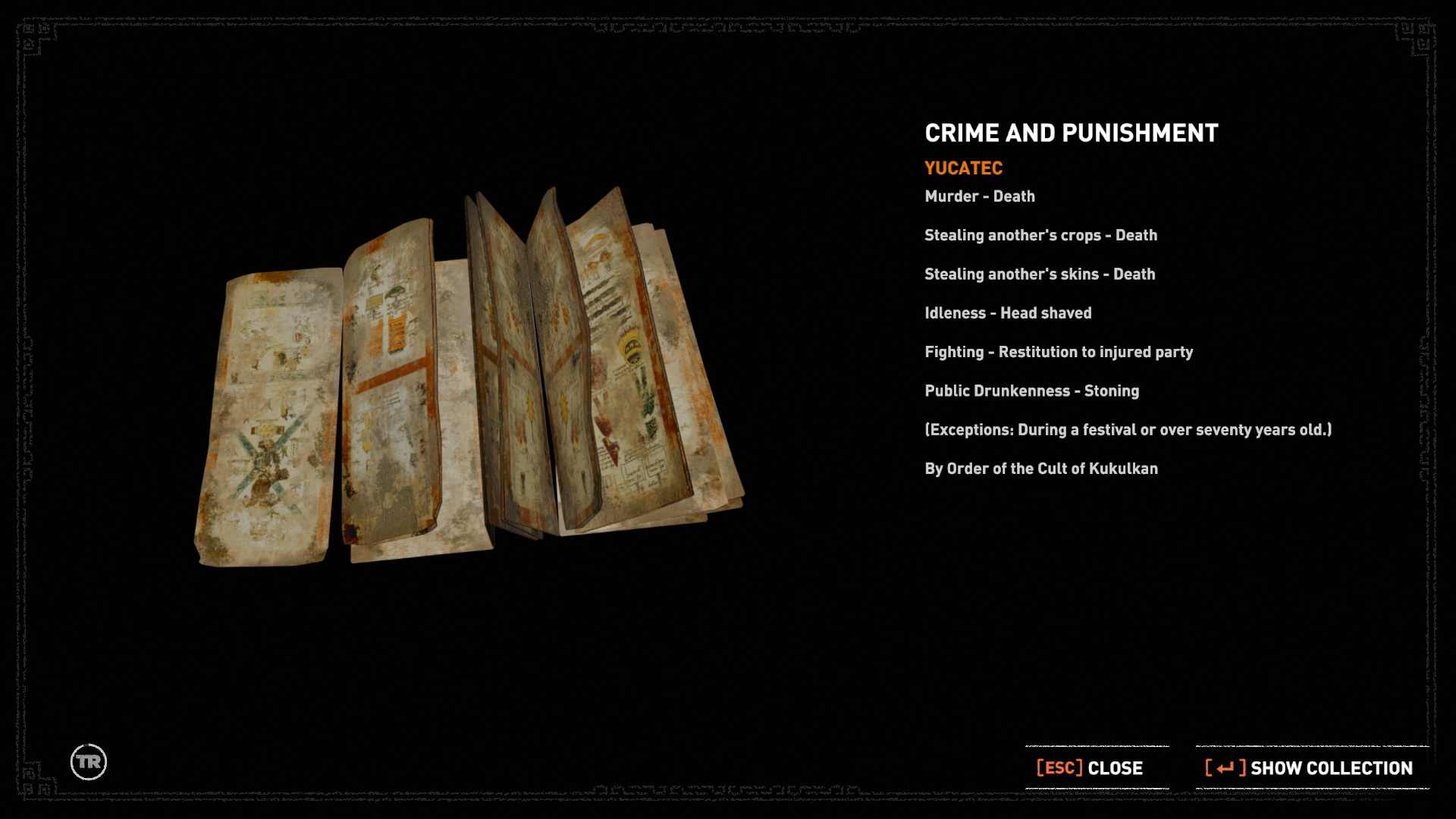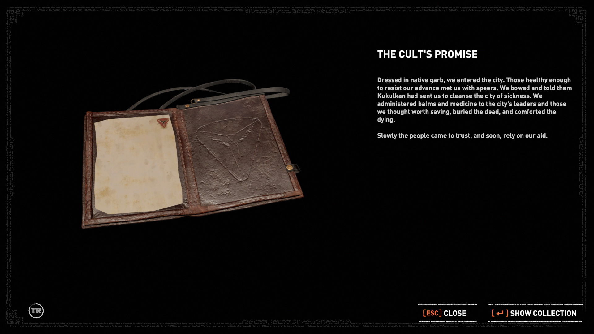 Kapaszkodj jobbra, majd fel, és amikor odaér a harcos, rántsd a mélybe. felmászva menj balra, majd kötéllel kapd el a jobb oldali sziklafalat, mássz fel, kapaszkodj balra, majd felfelé, és itt is rántsd a mélybe az egyik harcost. A másikkal és a következővel is barátnőd végez. Te menj fel a lépcsőn, át a függőhídon, és bemenve az épületbe jobbra meg is találod a 39. dokumentumot, a Cult of Kukulkan-t. 42/39