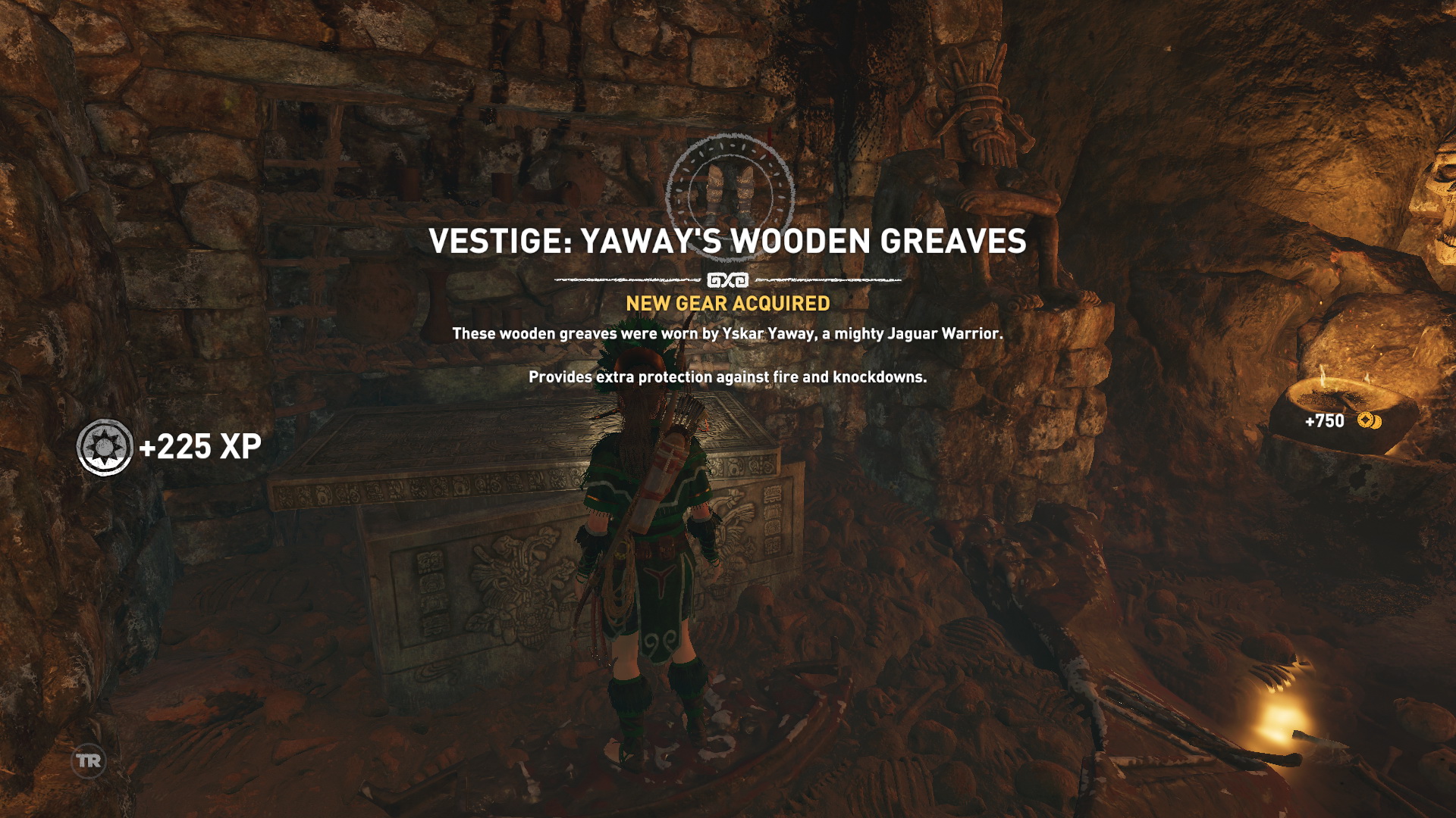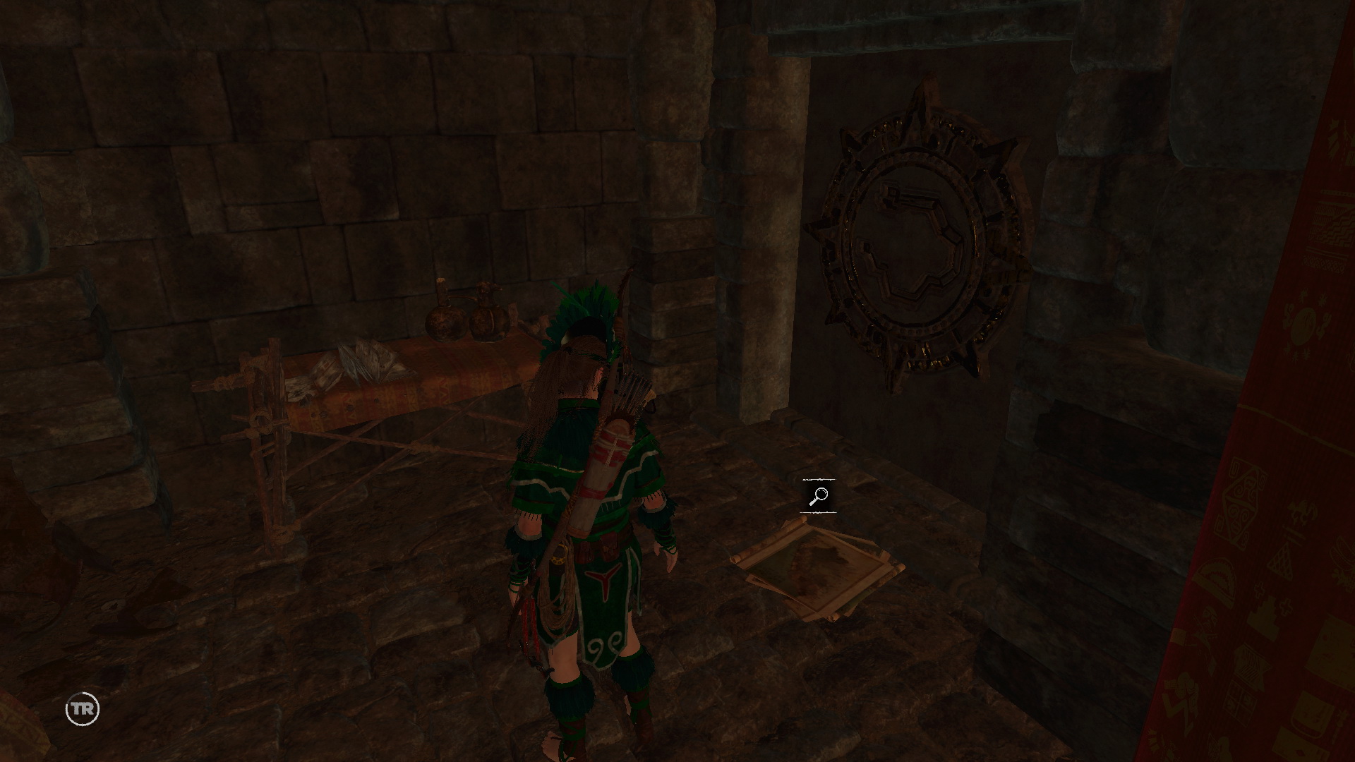 A másik oldalon nézd meg a fali képet, majd ugrás a liftre, és lemész vele a mélybe. A kriptából vedd ki a Yaway's Wooden Greaves-t. Kihívás teljesítve: Speak of the Dead