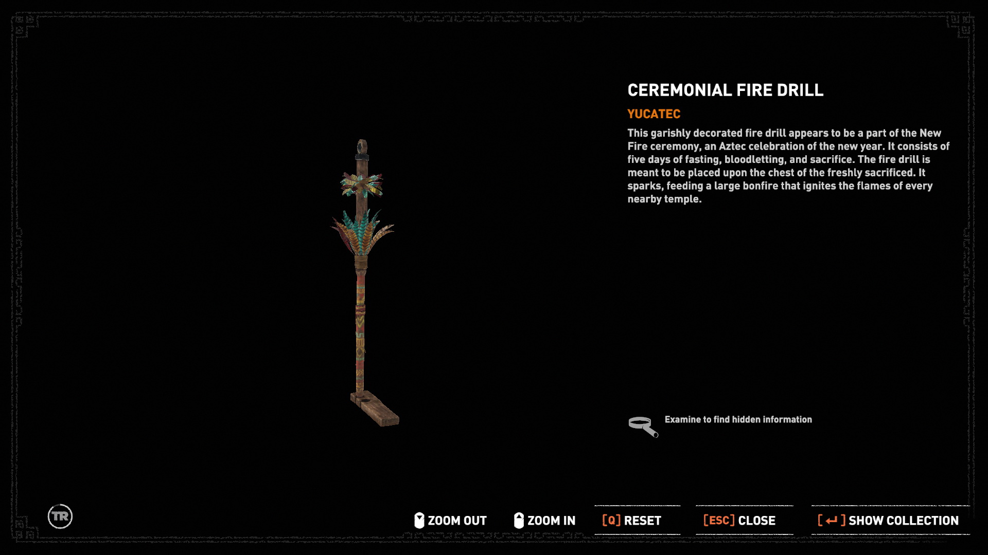 Kincses ládák: 3.  Relikviák: 28.  Dokumentumok: 42.  Faliképek, szobrok: 23.  Kiásható túlélő dobozok (XP-k): 34  Monolitok: 7 Térkép: 6  Felfedező hátizsák: 6