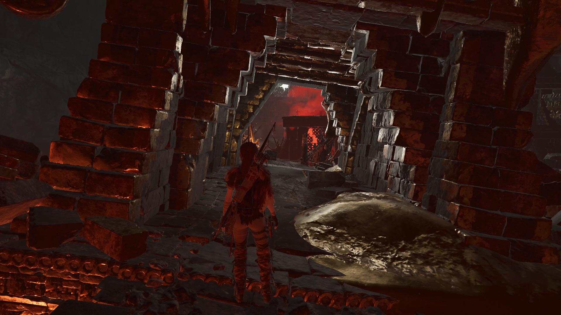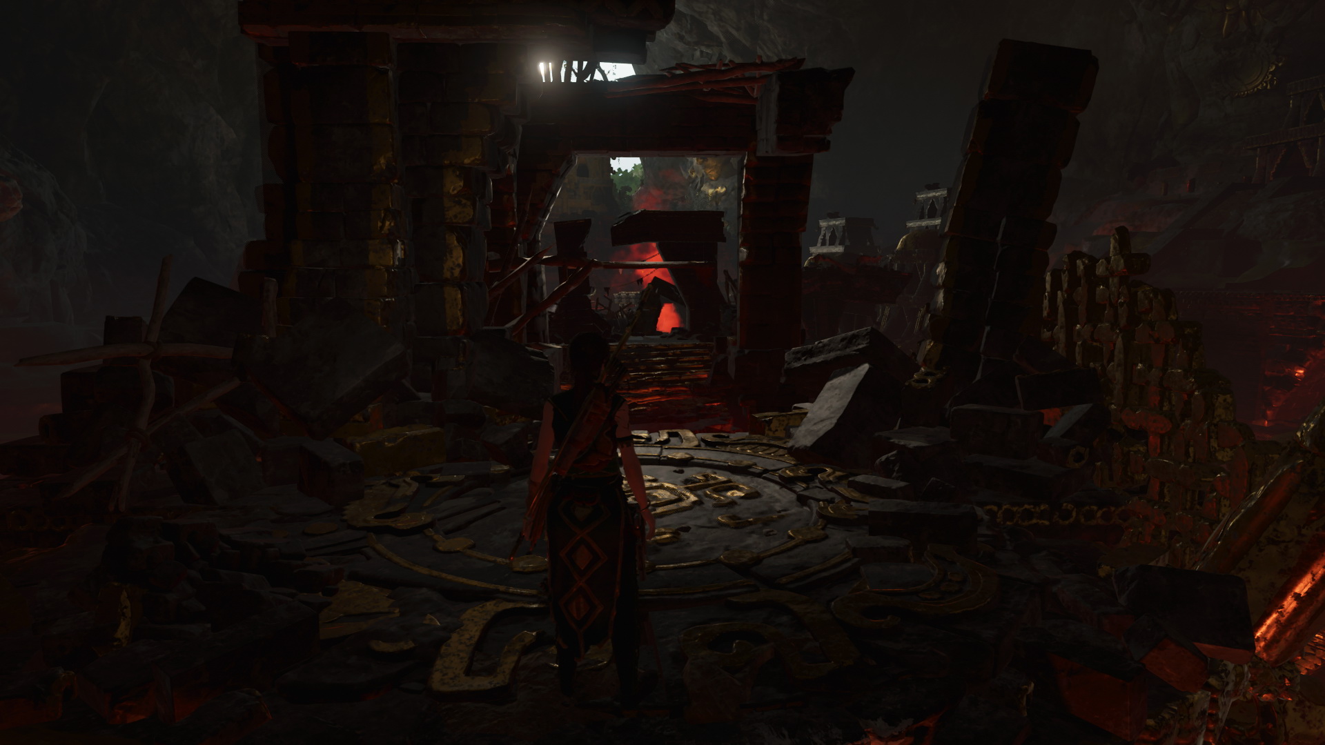Ússz át a mélyben a járaton, bújj át a résen, majd egy levegővétel után gyorsan ússz tovább. Újabb levegővétel, újabb gyors úszás a vulkanikus vízben. Balra tarts, majd felfelé, a fény felé, és kimászva menj át az alacsony járaton. egy hatalmas terembe értél. Van itt minden, láva, helikopter, Menj jobbra, ugord át a lávás gödröt, majd egy köteles ugrással kapd el a sziklafalat. Jobbra mássz, majd felfelé, a rúdon át folytasd az utadat, aztán megint egy ugrás, fel a lépcsőn, és átbújva az alacsony részen, a gerenda végéről egy köteles ugrással jutsz tovább. Mássz fel a sziklafalon, jobbra mássz, ereszkedj le a kötélen, és ugrás a szemközti platformra. Köteles nyíllal jutsz el a szemközti részre.