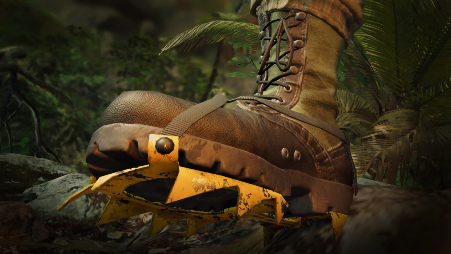 Bakancsra szerelhető hágóvas, amely lehetővé teszi a kifelé dőlő, vagy akár vízszintes sziklafelületek megmászását is. |