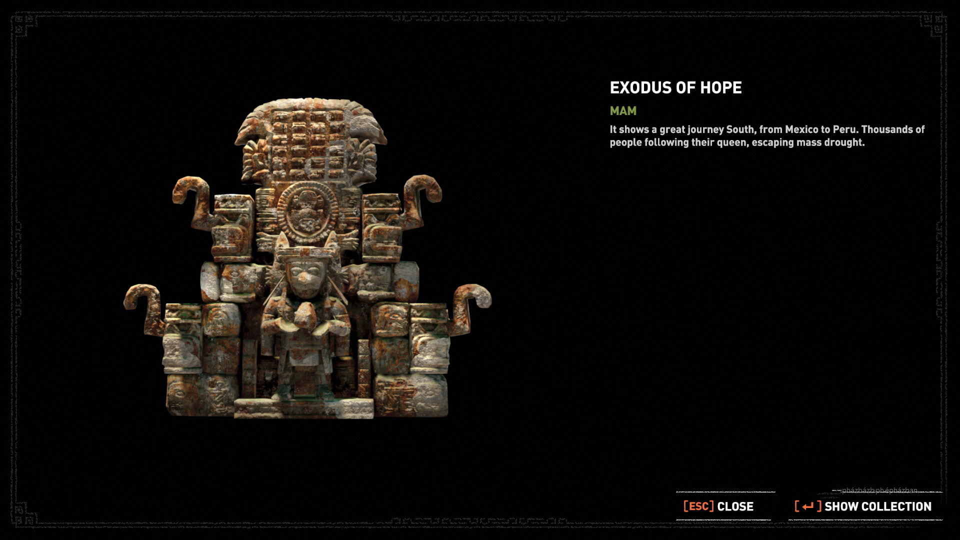 És most balról jobbra ugorj rá mind a három súlykapcsolóra. Rohanj jobbra ki, és rohanj át a lassan lenyíló platformokon át, ki oldalt ugorva a romokhoz. Menj fel, és a kapcsolóval nyisd ki a következő gázfújót. Menj még feljebb, és a gerendaplatformról lőj bele jobbra a gázfújóba, így a lengő súly kilendül. ugorj rá, és rajta keresztül juss el a túloldalra. Ott is told be a kapcsolót, majd továbbmenve felfelé, a gerenda platform előtt menj le jobbra a lépcsőn, és nézd meg a 2. Fali festményt, szobrot. Exodus of Hope ![]()