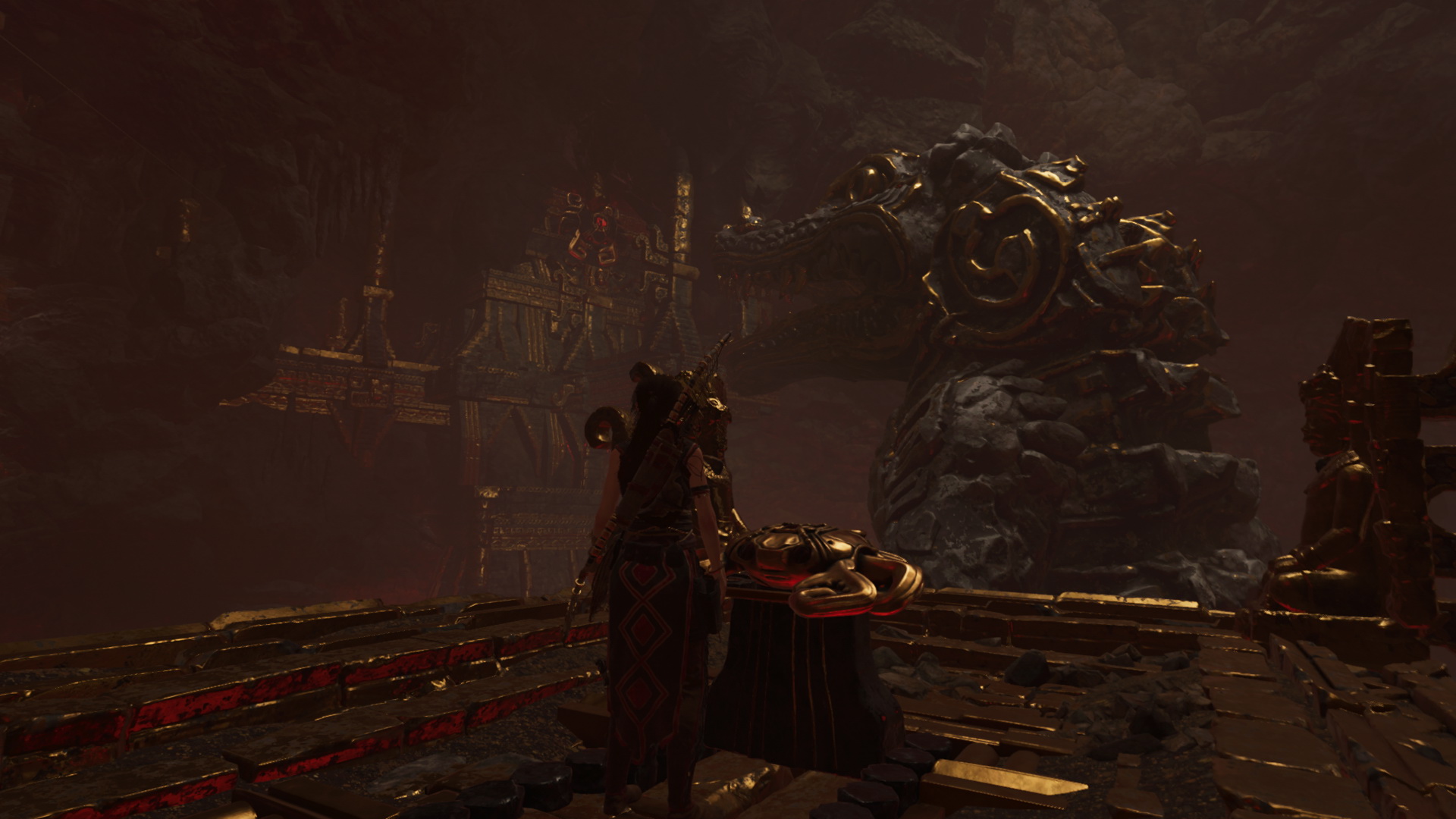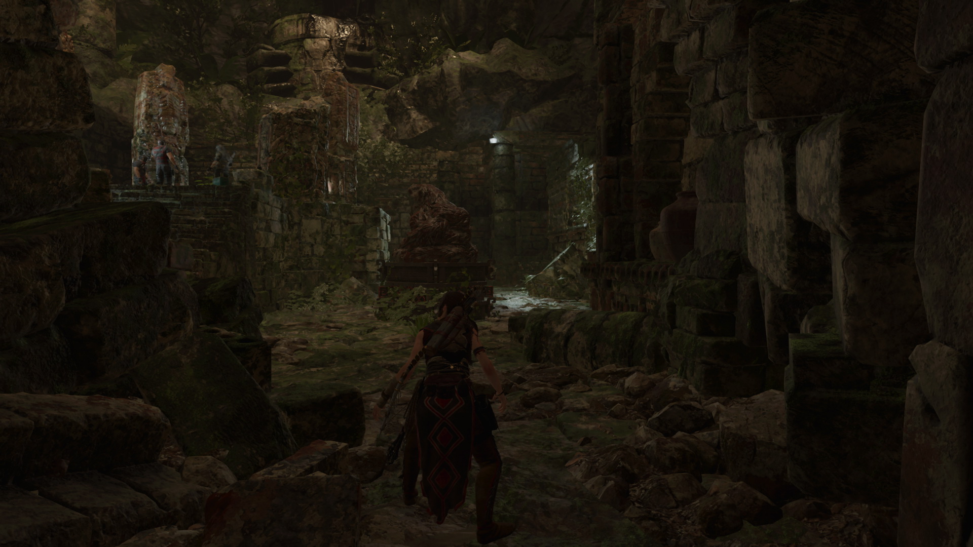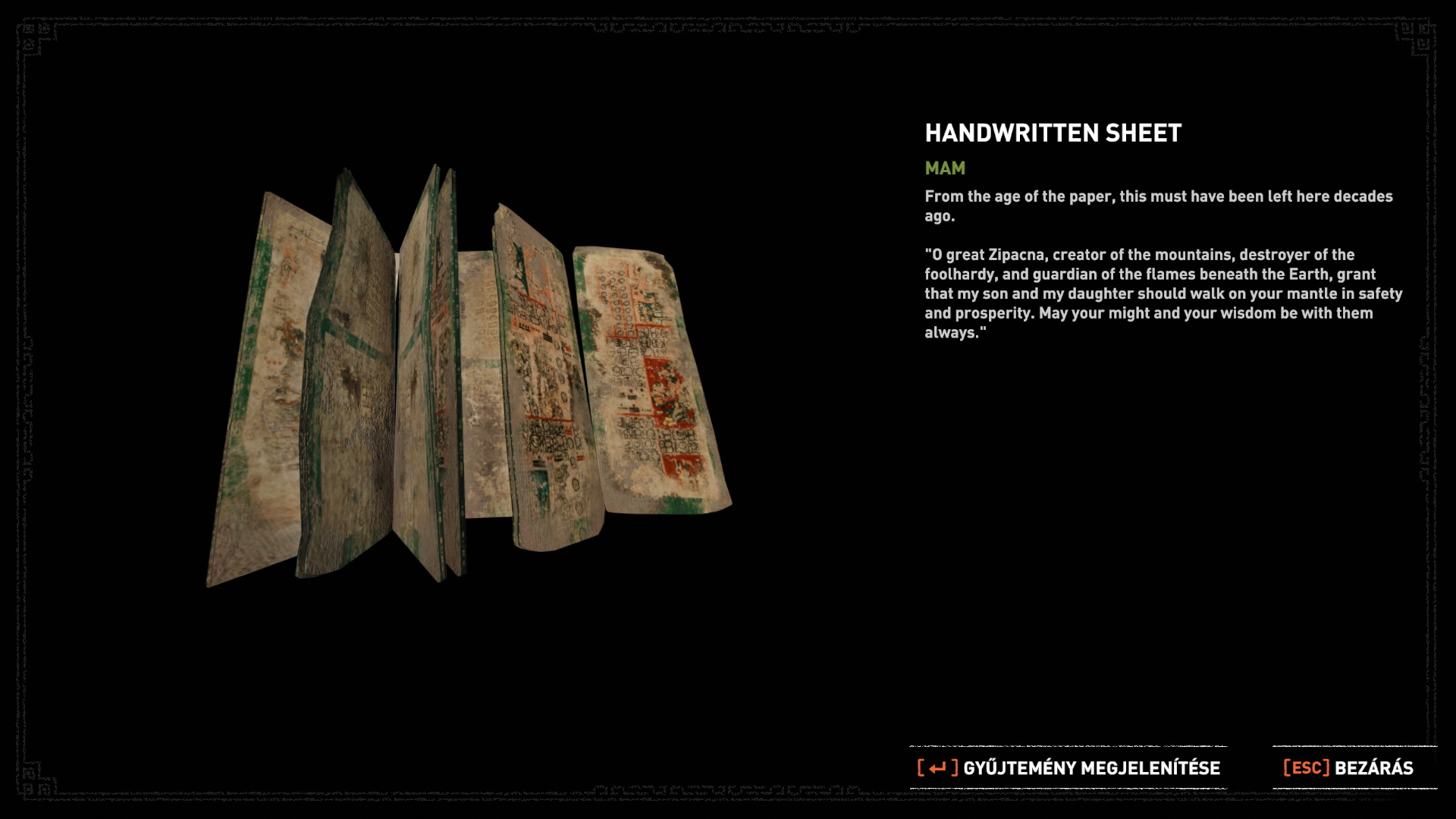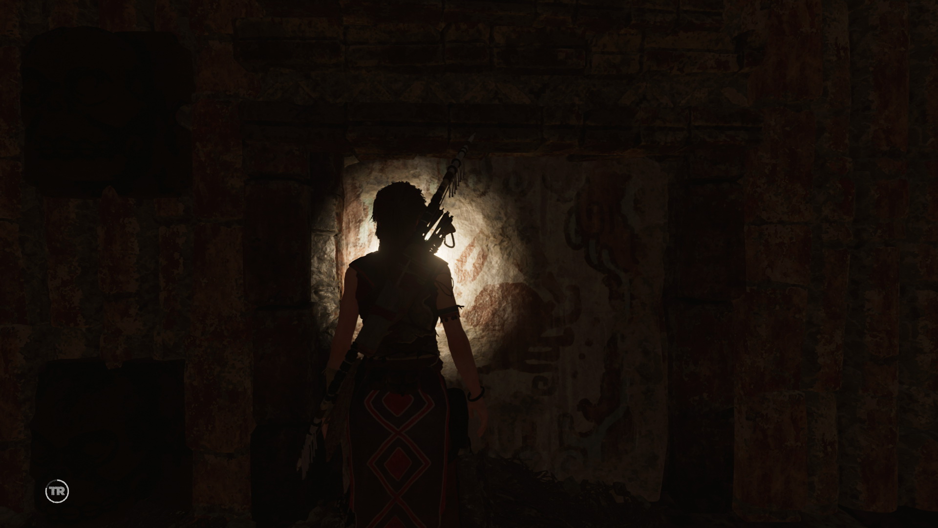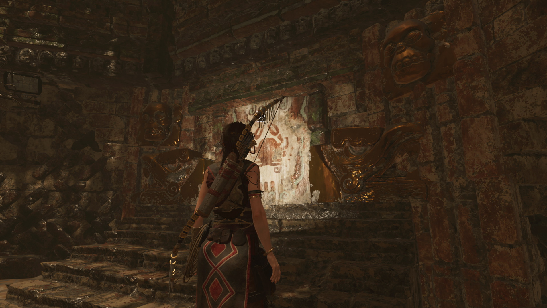 Balra ess le az épület melletti tetőre, majd a lecsúszósokon át eljutsz végül egy gerendára. Kapd el, majd a következőn kapaszkodj jobbra, ugrás az ágon át le az ösvényre. Ugrás a lengő hídra, a végén egy köteles ugrással haladj jobbra, elkapva a falat. Kapaszkodj jobbra, ugrás a sziklafalra. mássz fel, és fent menj fel a lépcsőn, be az épületbe. Bent, szemben olvasd meg, nézd meg az 1. falfestményt, szobrot, a In Honor of Zipacna-t. ![]()
