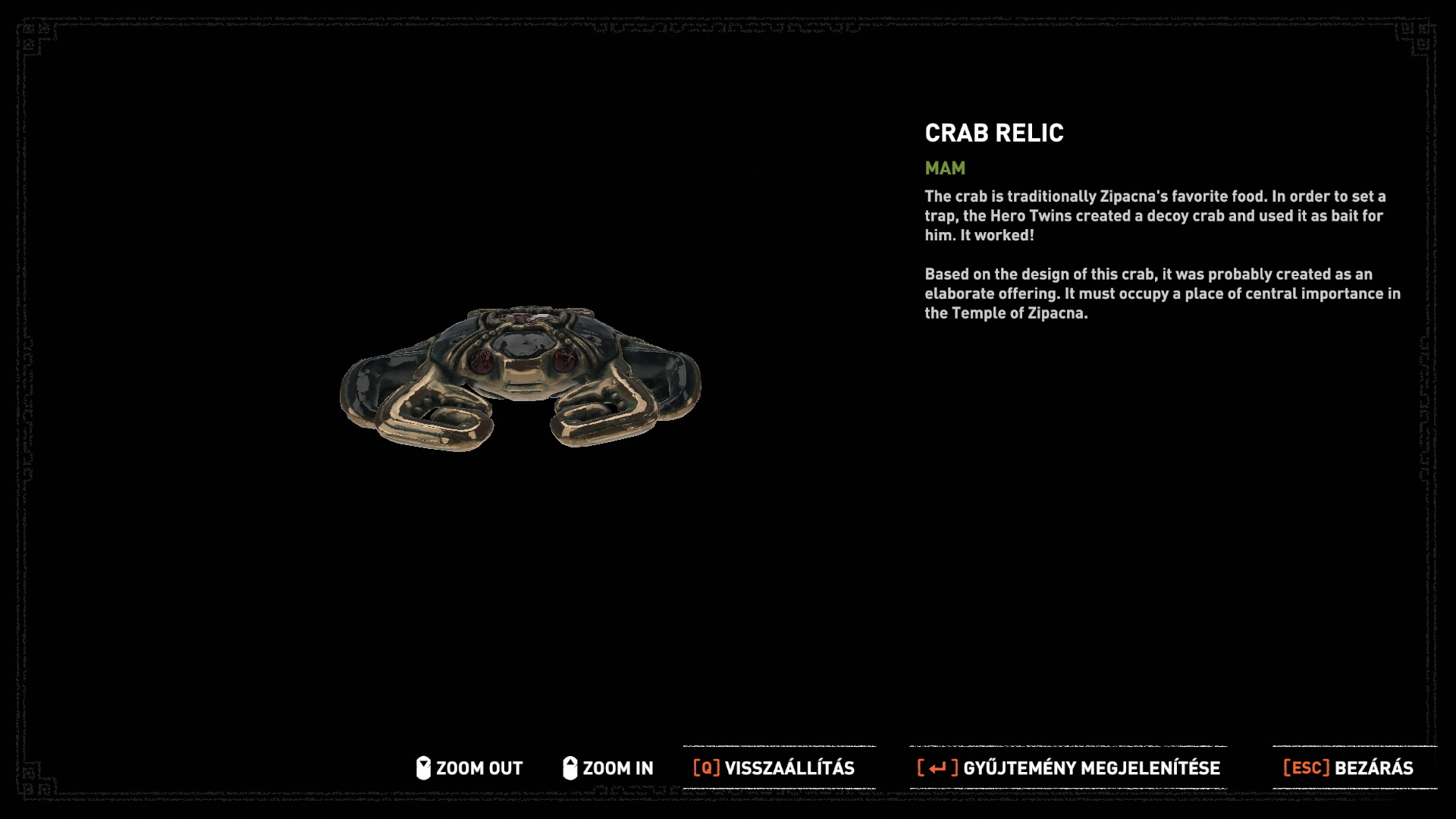 Megfordulva indítsd be az aggregátot, és fénybe borul a sötét járat, és a vasajtó is kinyílik. Menj át rajta, menj jobbra, majd balra, át a következő nyitott vasajtón, utána jobbra haladsz, és a fali kép mellett jobbról bújj át a fali résen. Nyomd meg a kapcsolót, kinyitva a rácsot, majd fordulj meg, és menj lefelé a lépcsőkön, ugrás át a gerendán, át a következő leszakadt részen, majd balra fel a lépcsőn, át a nyitott vasajtón. Jobbra, az első beugróban told meg a kapcsolót, és menj át az elgördülő ajtón. Ugrás át a sziklafalra, és ereszkedj le a kötélen. Végezz a fegyveresekkel, és vedd fel az egyik oszlop tövében az 1. relikviát, amiért jöttél a Crab Relic-et. ![]()