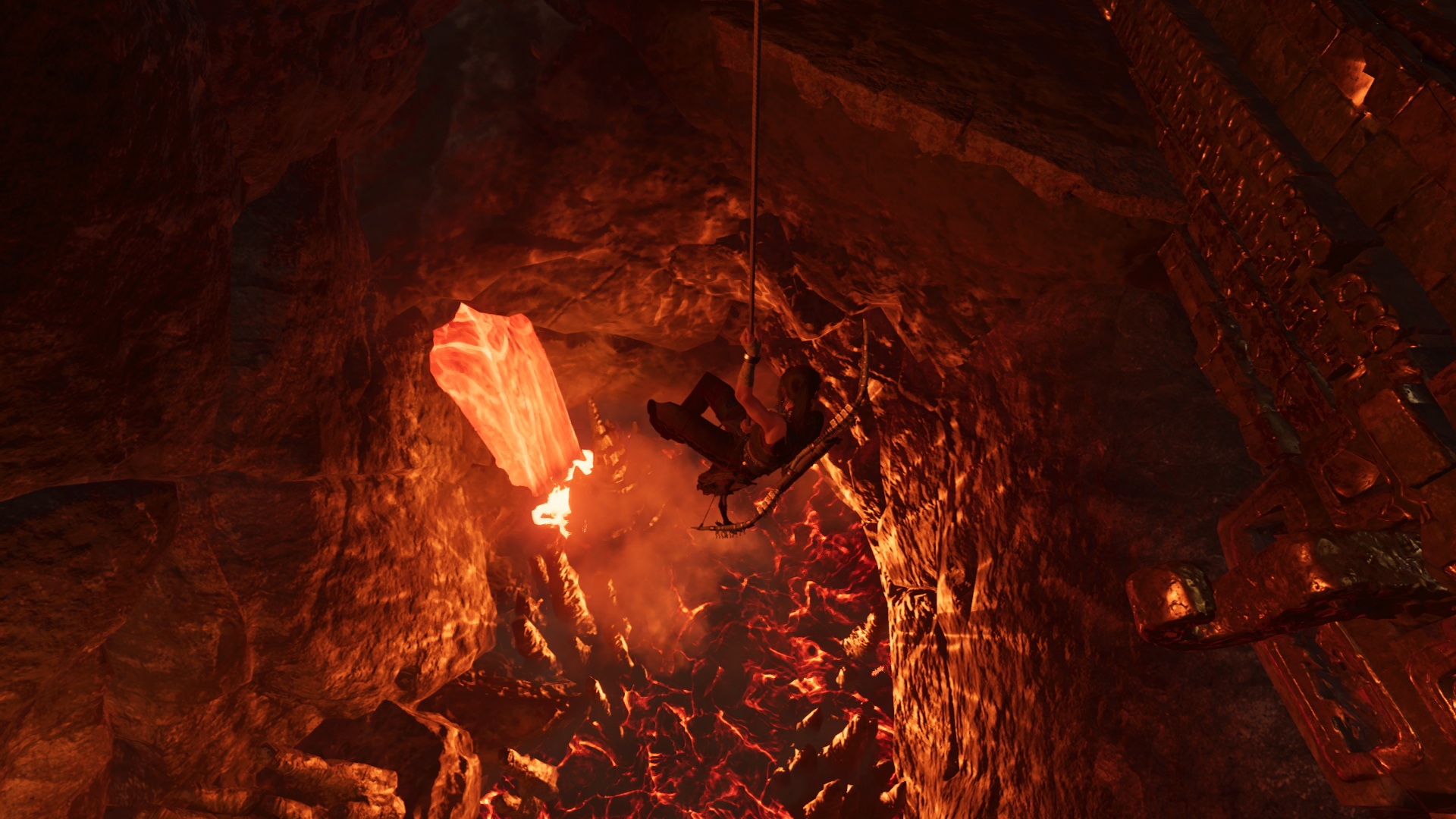Kicsit megint visszamenve, jobbra kapaszkodj fel a falon, majd balra menve a keskeny ösvényen ugrás át a két liften át a túloldalra. Menj balra, és ismét forgasd el a hidat. Ugrás az első liftre, fordulj meg, és kösd össze a két köteles részt. Ugrás most a másikra, és eljutsz a túloldalra. Rántsd le a kapcsolót, és balra indulj, átugorva a fali peremet kapd el. Menj balra, a fahídon, a végén ugorva, kapd el kötéllel a sziklafalat, ugorj a másik fahídra, és felfelé menve rajta ugrás át a tüzes folyosóhoz.