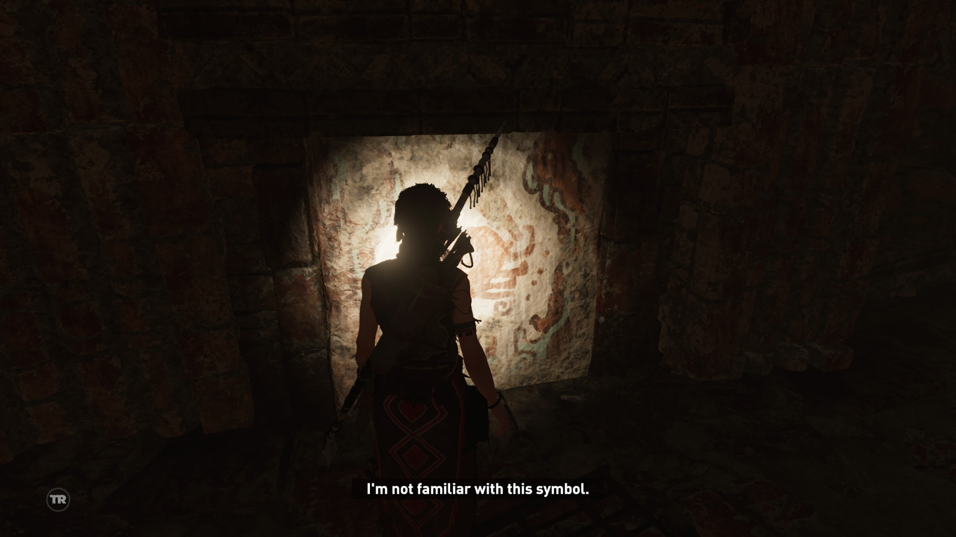 Menj le a lépcsőn, rántsd ki kötéllel a romhalmazt, és megnézheted mögötte az 1. falfestményt, szimbólumot. ![]()