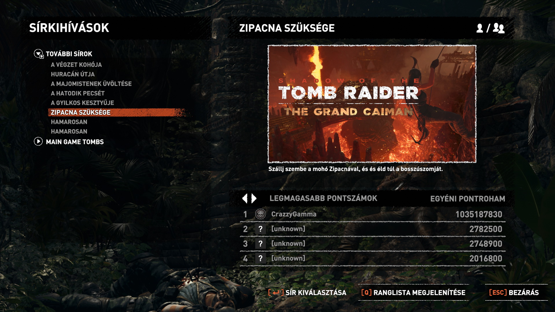 - Két úton lehet elérni ezt a DLC-t. Ha végeztél a játékkal már, akkor a menüben a Challenge Tombs menüből tudod indítani Zipacna szüksége pályát.