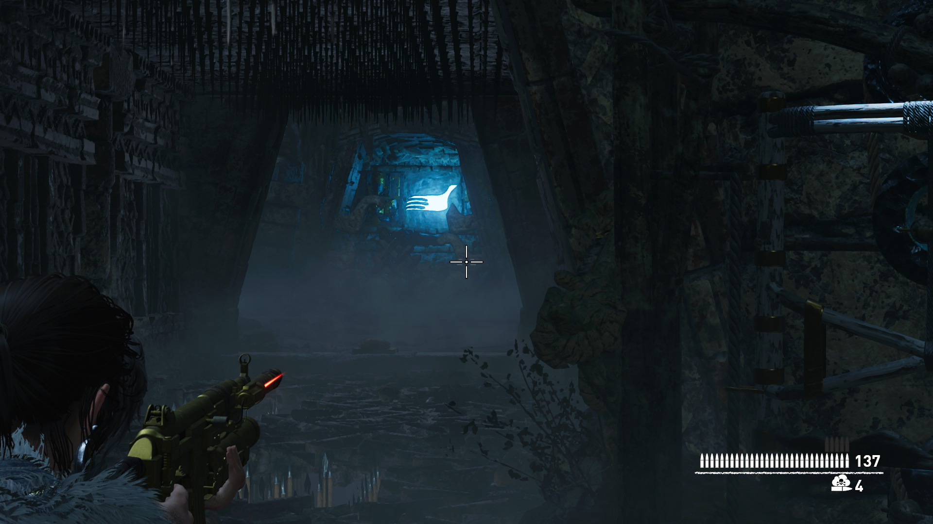 Menj a gödörhöz, ugrás a sziklafalra, és ereszkedj le a mélybe. Ess le, menj végig a folyosón, és ússz át a résen. A túloldalon rántsd be a fegyvereseket a vízbe, majd balra, a vízben, ússz át a fali résen. Balra ússz, és a lépcsőnél mássz a partra, a sűrű növényzetben. Végezz a fegyveresekkel kedved szerint, majd az égő tűz mellett jobbra, mássz fel a falon. Shotgunnal lődd szét az akadályt, és menj tovább.