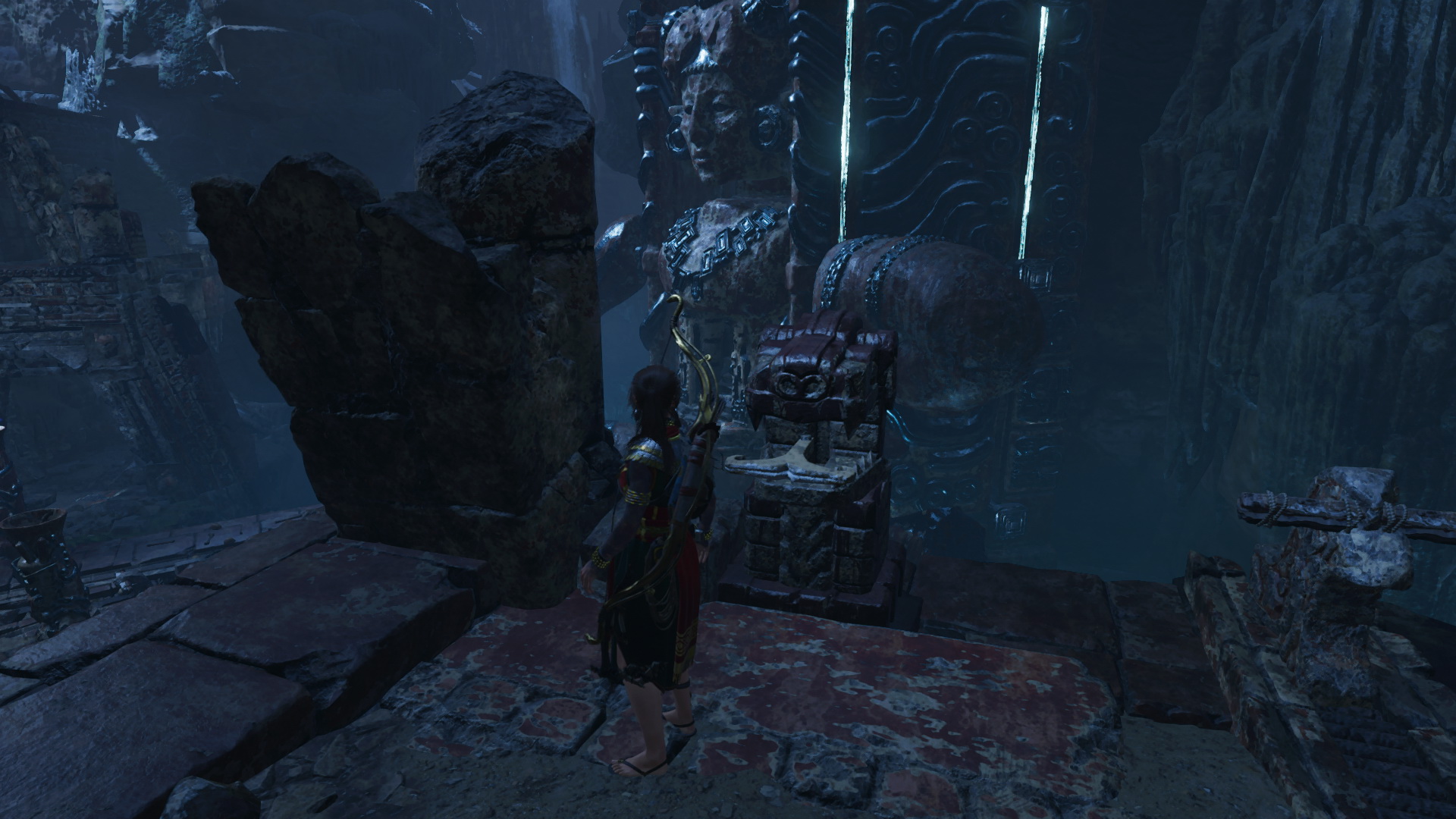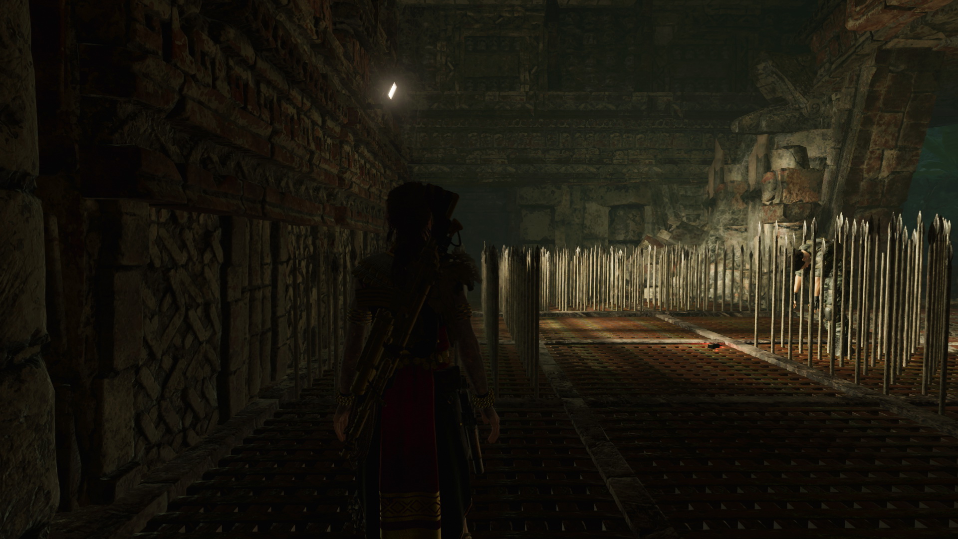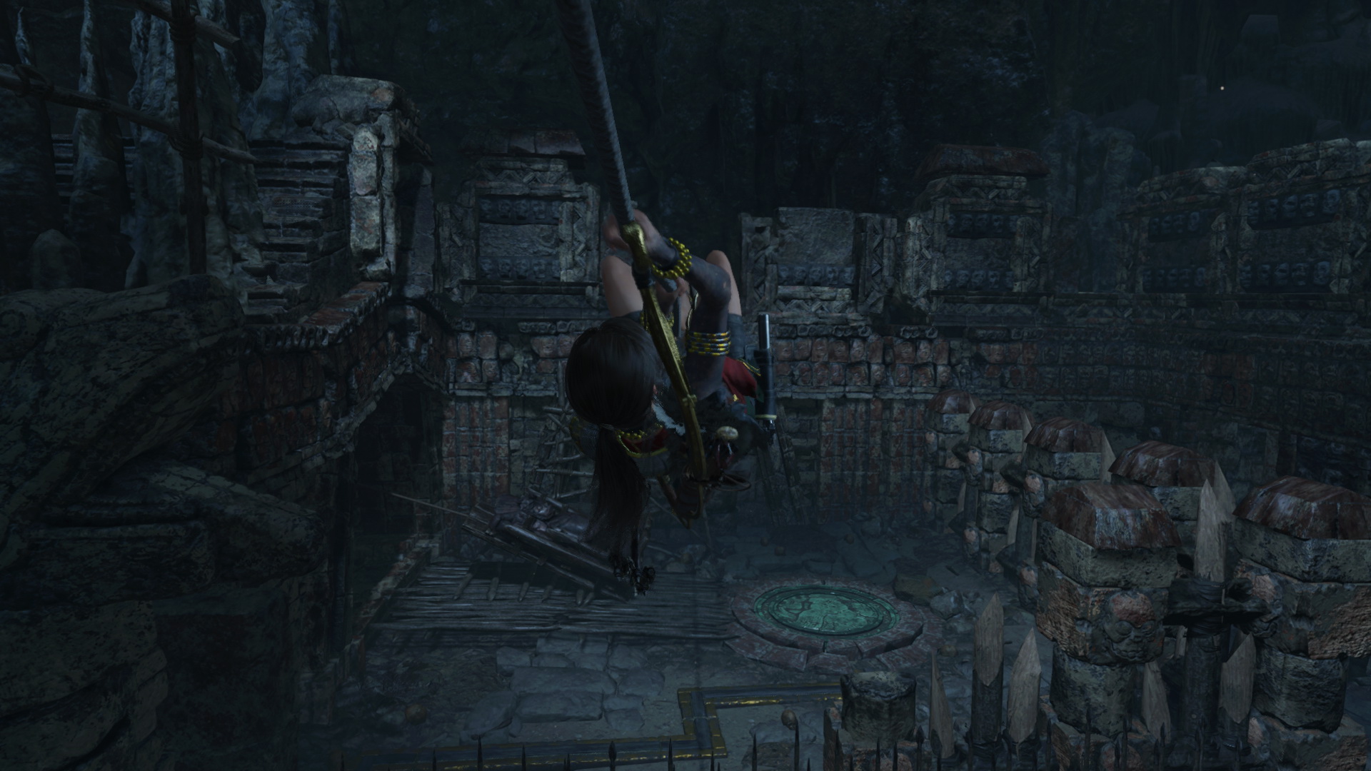 Balra ugorj az első kapcsolóra, és menj át a kinyitott ajtón. Menj végig a folyosón, vigyázva a csapdákra, állj rá a kerek súlykapcsolóra, majd rohanj át a szabad úton, a túloldalra. Vágd el a törött szobor mögött a kötelet, az rácsúszik a súlykapcsolóra, és irány vissza megint a túloldalira. Ha elgördült a kerek ajtó, menj vissza a főterembe, és balra ugrás rá a következő ajtónyitó kapcsolóra. Ott is menj át a folyosón, lépj rá balra a súlykapcsolóra, és balra a szobrok mögött juss fel az emeletre. Lőj egy kötelet a szemközti részre, és mássz át. Vágd el ott is a kötelet, és ott is rácsúszik a szobor a súlykapcsolóra. irány vissza a másik oldalra, és ismét rálépve a kapcsolóra, elgördül az ajtó, és a kék fény ott is beárad a terembe. Irány vissza a főterembe, és nyisd ki a szemközti ajtót is. Menj végig ott is a folyosón, és egy nagyterembe értél. Jobbra menj ugrás a falra, juss fel, és lépj rá a súlykapcsolóra. Ugrás vissza, majd jobbra, a tüskés oszlopra, és annak a túloldalán jobbra menve juss fel átugorva a falra. Gyorsnak kell lenned, hogy ki ne lukadj. :) Ott is vágd el a szobor kötelét, és az is rácsússzan a kapcsolóra. Irány vissza a tüskés oszlopra, juss vissza az első súlykapcsolóra, és rálépve elgördül a kerek ajtó, és ott is beárad a kék fény. Menj vissza a főterembe, és forgasd meg a kereket.