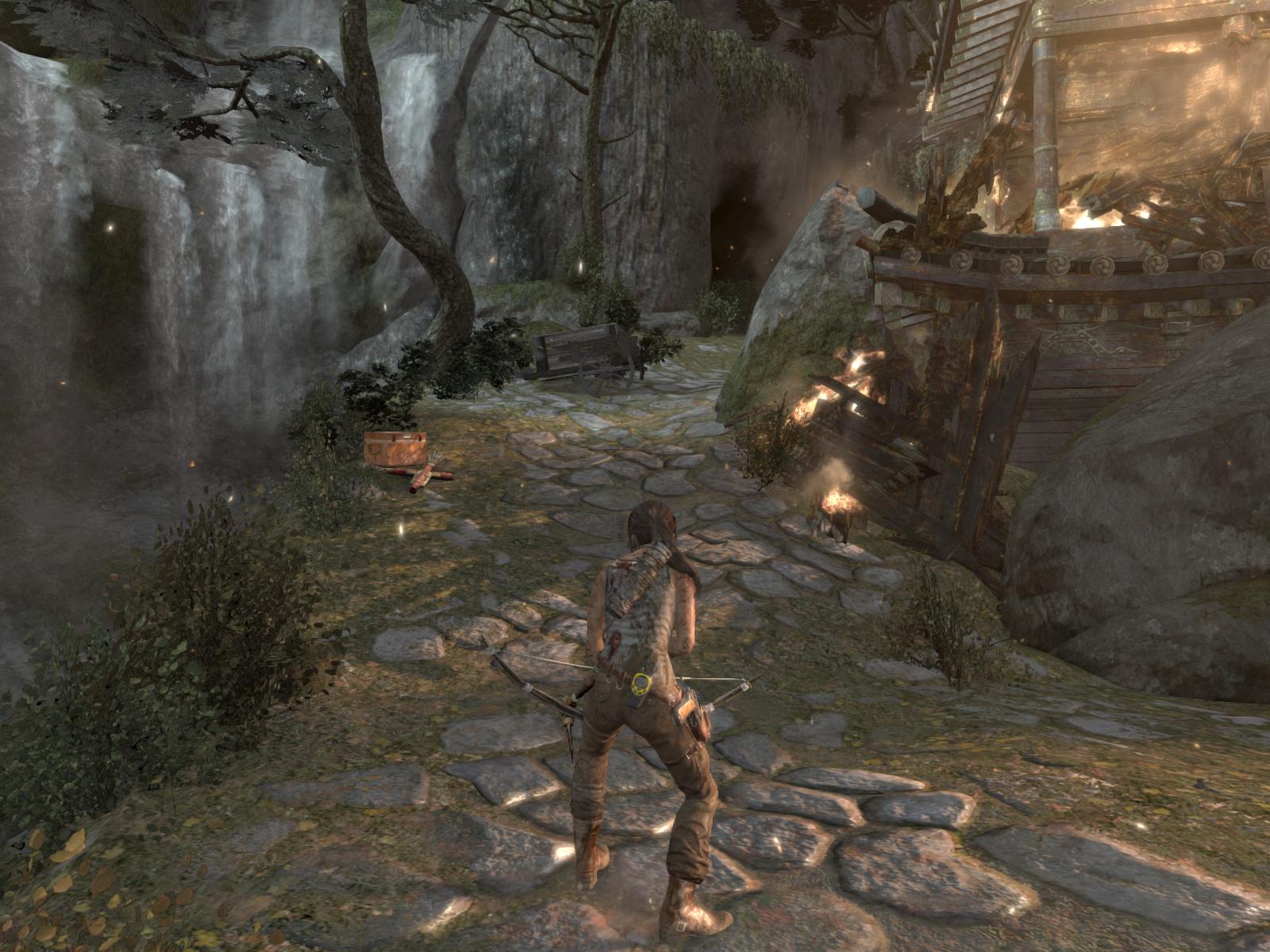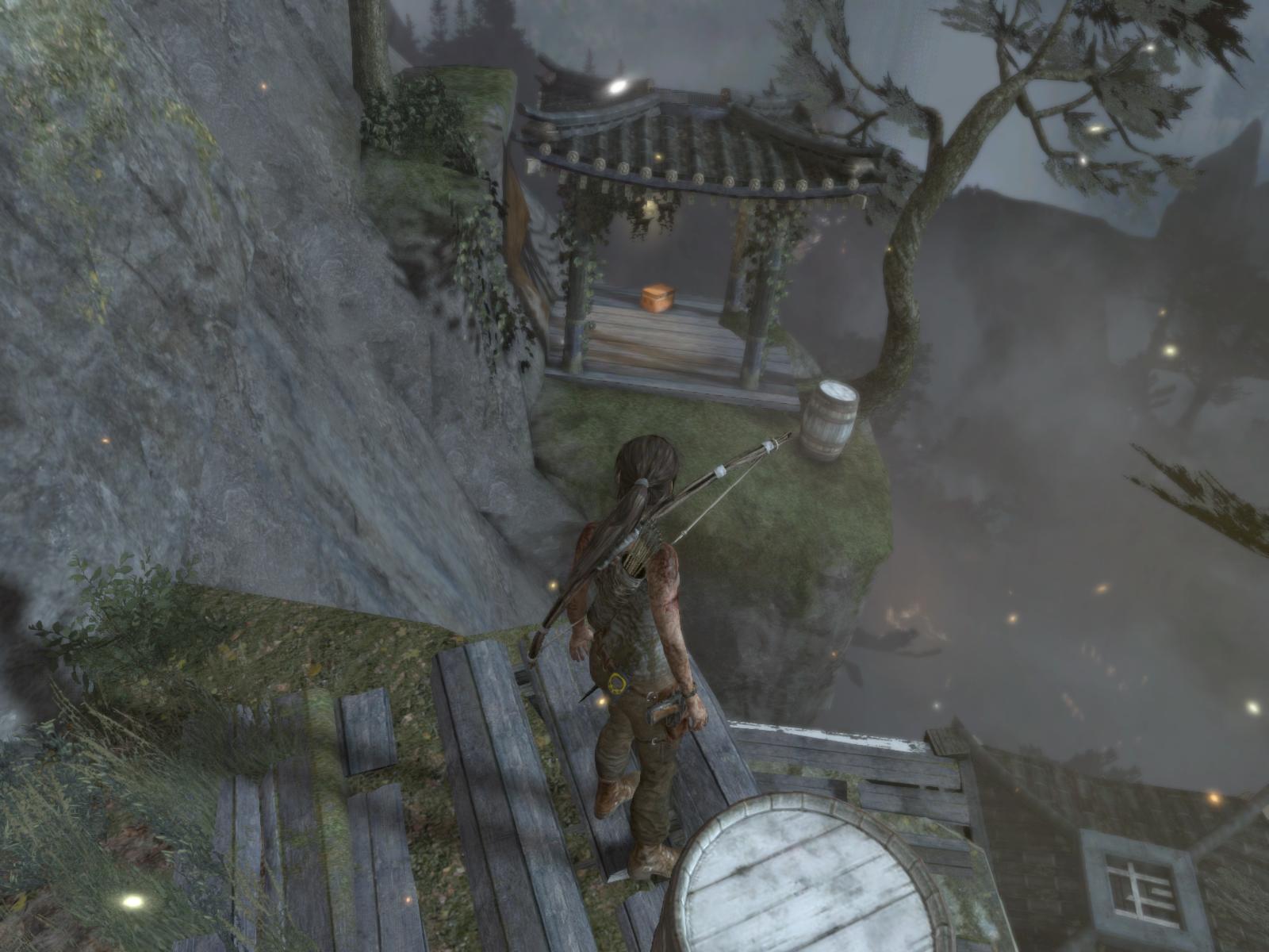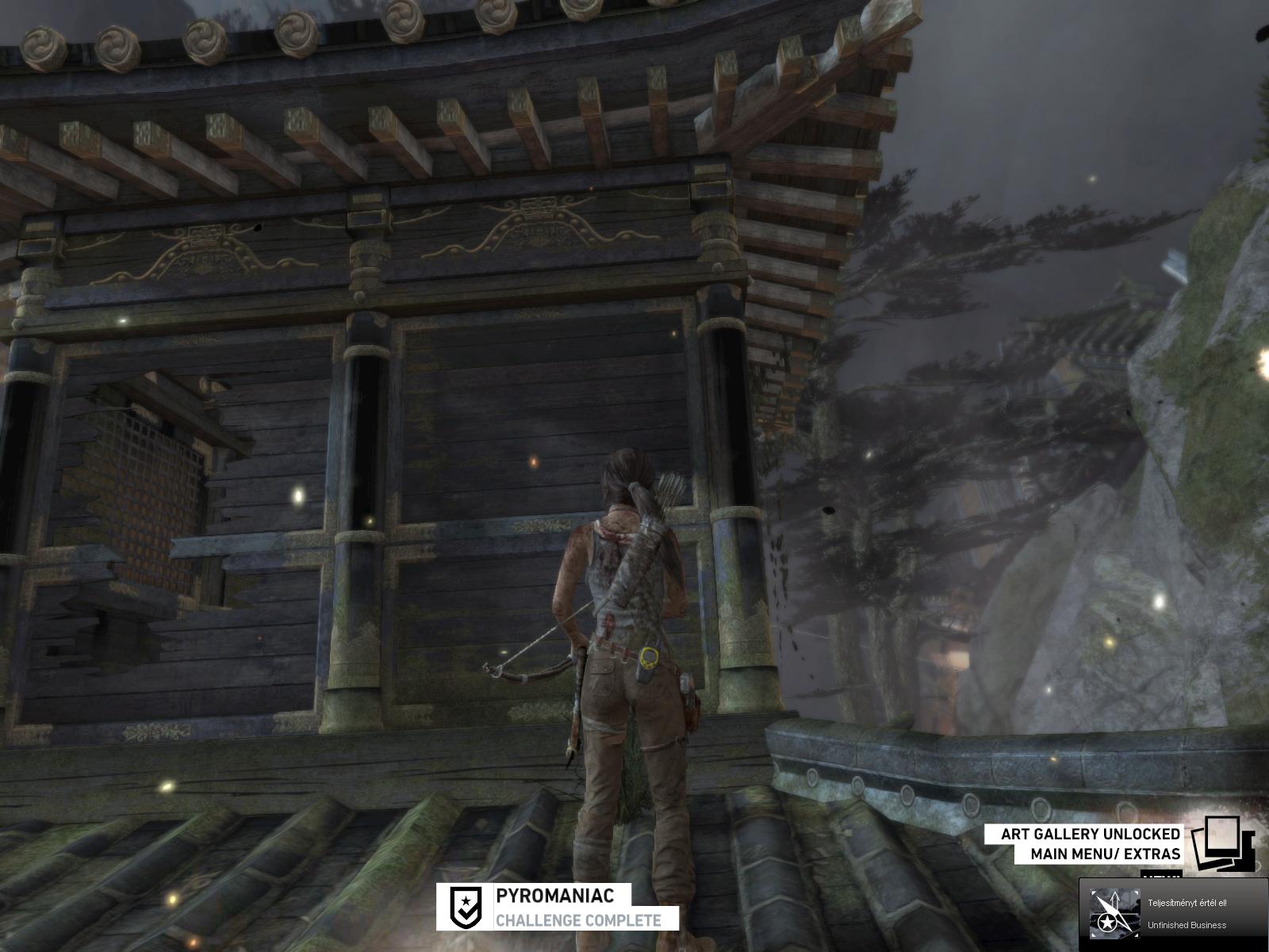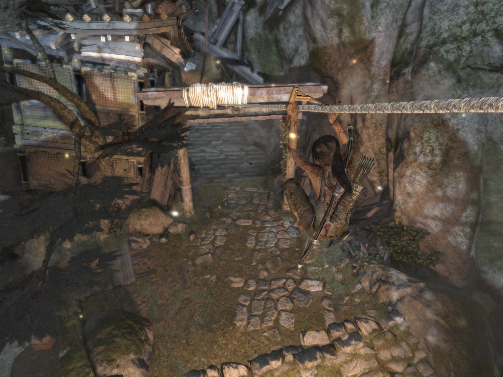 Menj először ott is jobbra, gyújtsd be amit lehet, még a zsákot is felgyújthatod a falon, és egy kis lámpást is találsz a pagodán. Ha megvan minden, menj fel a lépcsőn, mássz fel a sziklarésben, és találkozni fogsz a sebesült Roth-al.