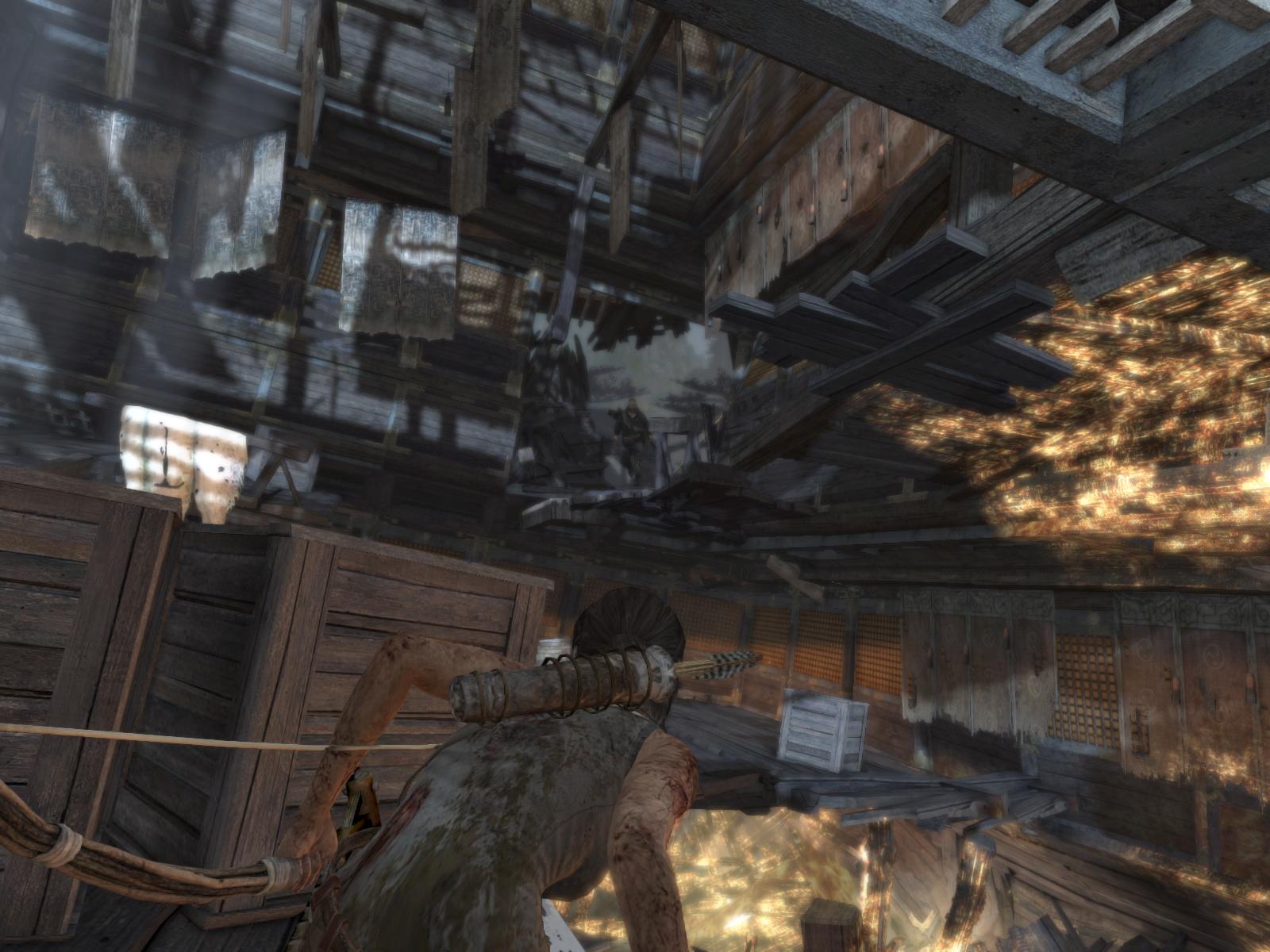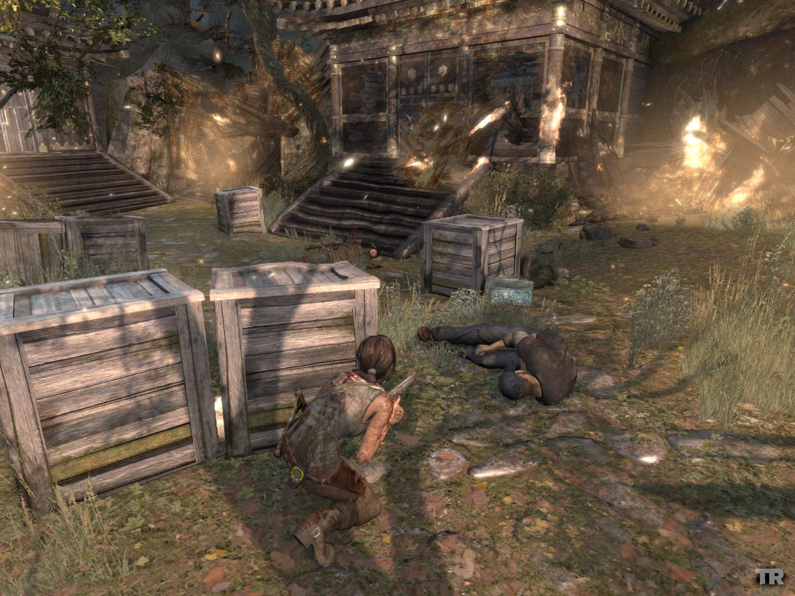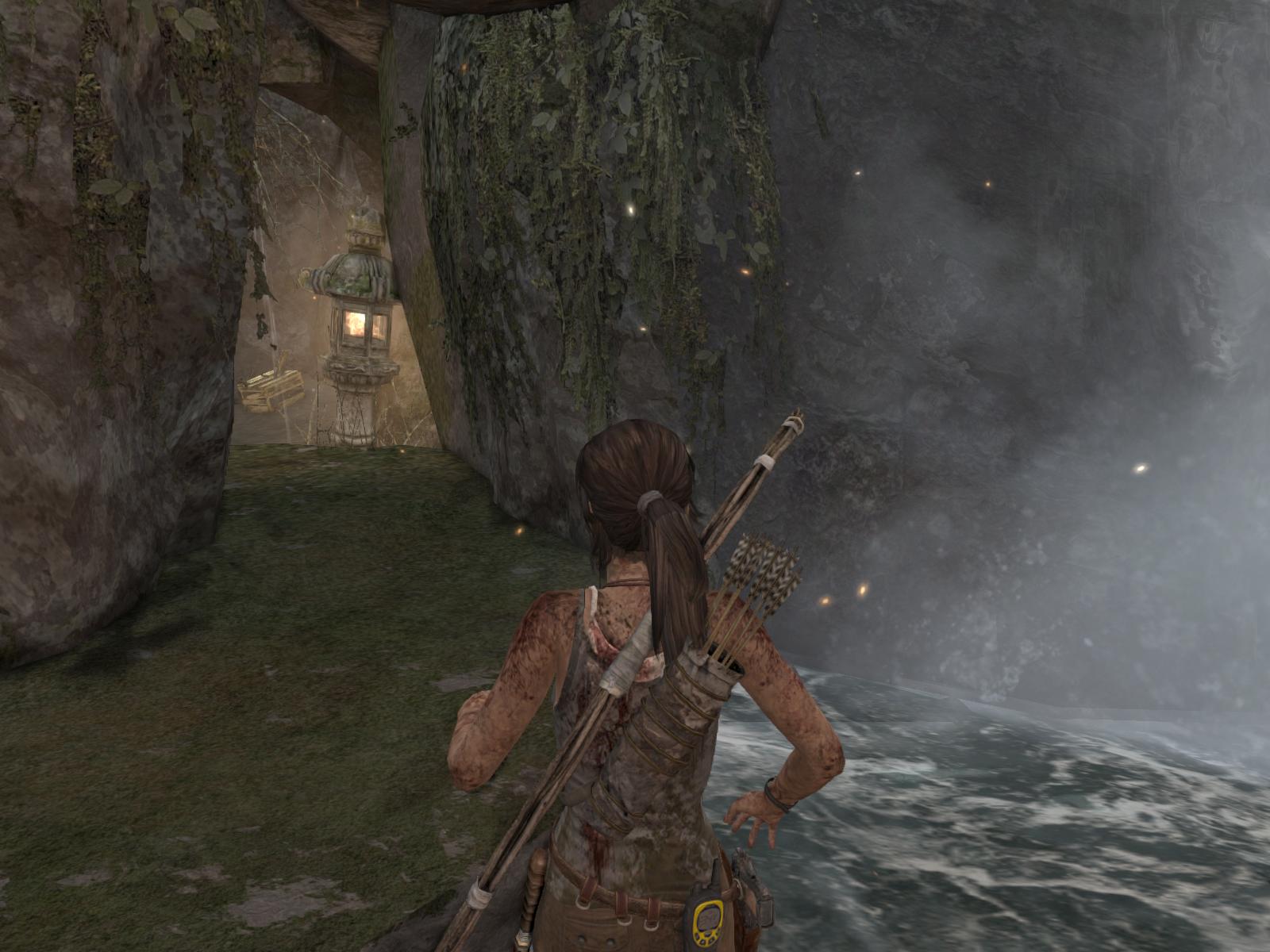 Menj először ott is jobbra, gyújtsd be amit lehet, még a zsákot is felgyújthatod a falon, és egy kis lámpást is találsz a pagodán. Ha megvan minden, menj fel a lépcsőn, mássz fel a sziklarésben, és találkozni fogsz a sebesült Roth-al.