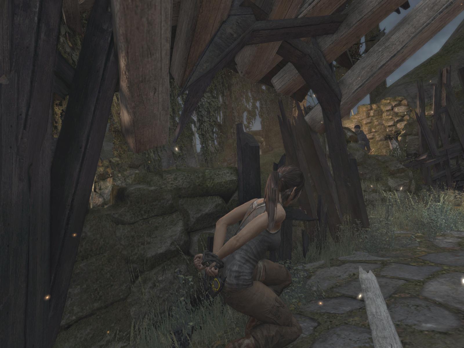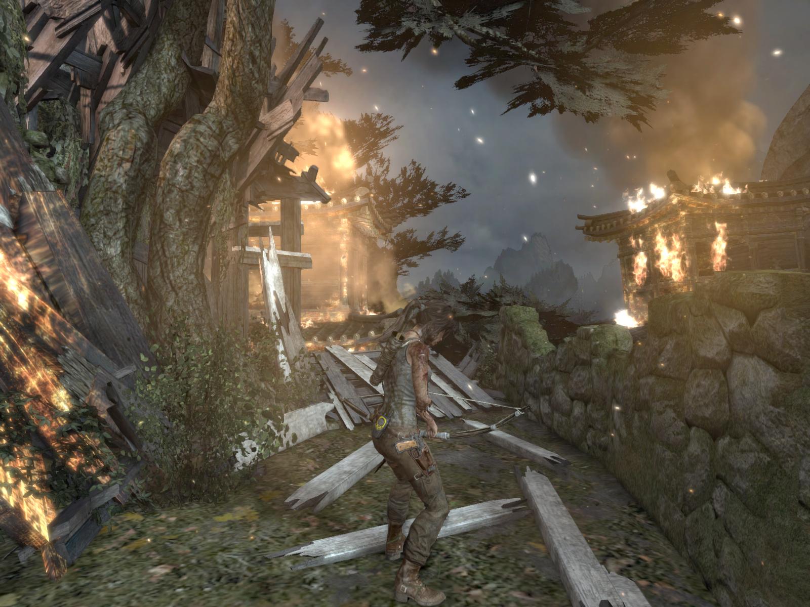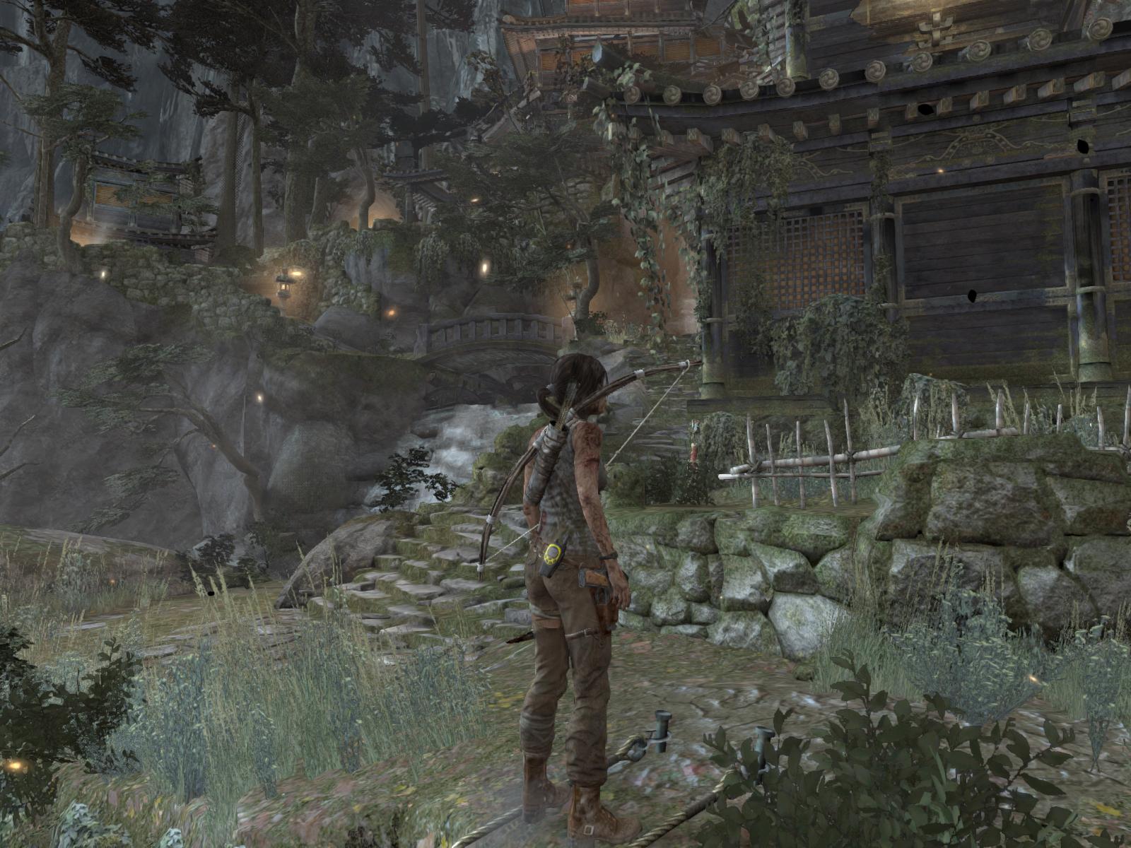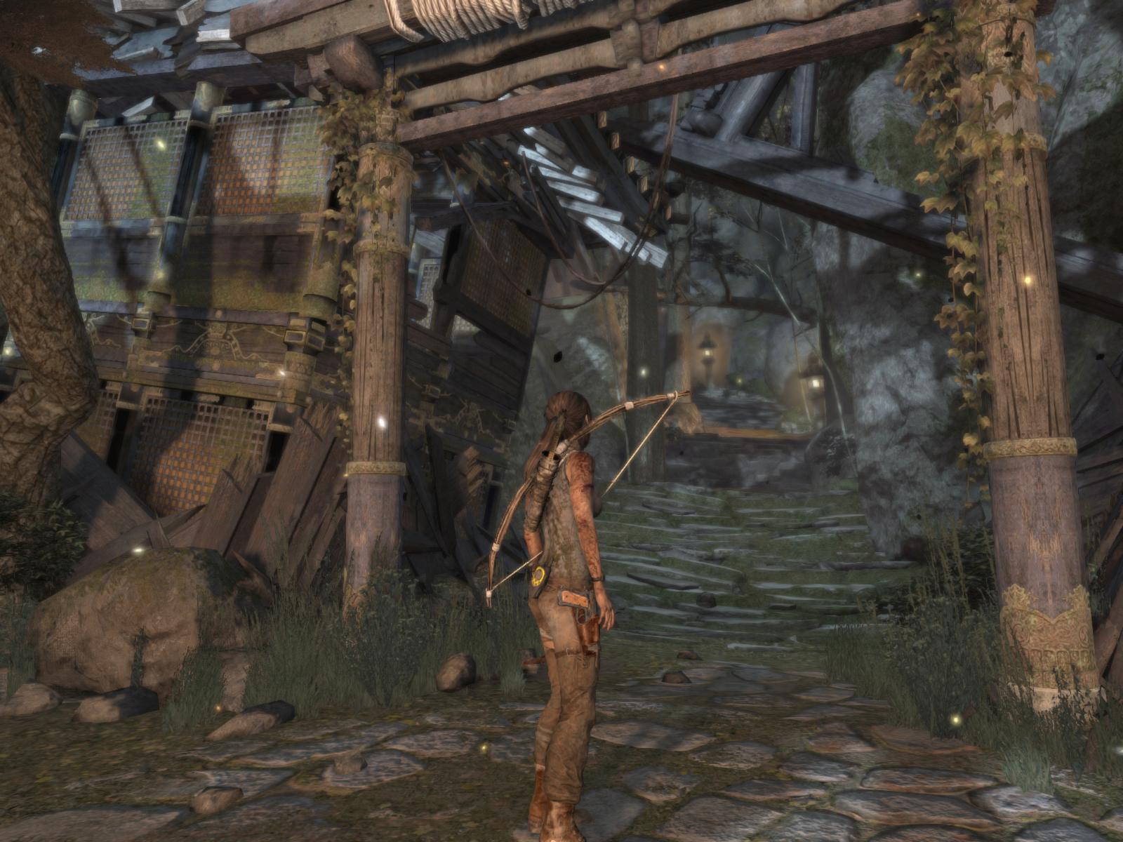 Menj először ott is jobbra, gyújtsd be amit lehet, még a zsákot is felgyújthatod a falon, és egy kis lámpást is találsz a pagodán. Ha megvan minden, menj fel a lépcsőn, mássz fel a sziklarésben, és találkozni fogsz a sebesült Roth-al.