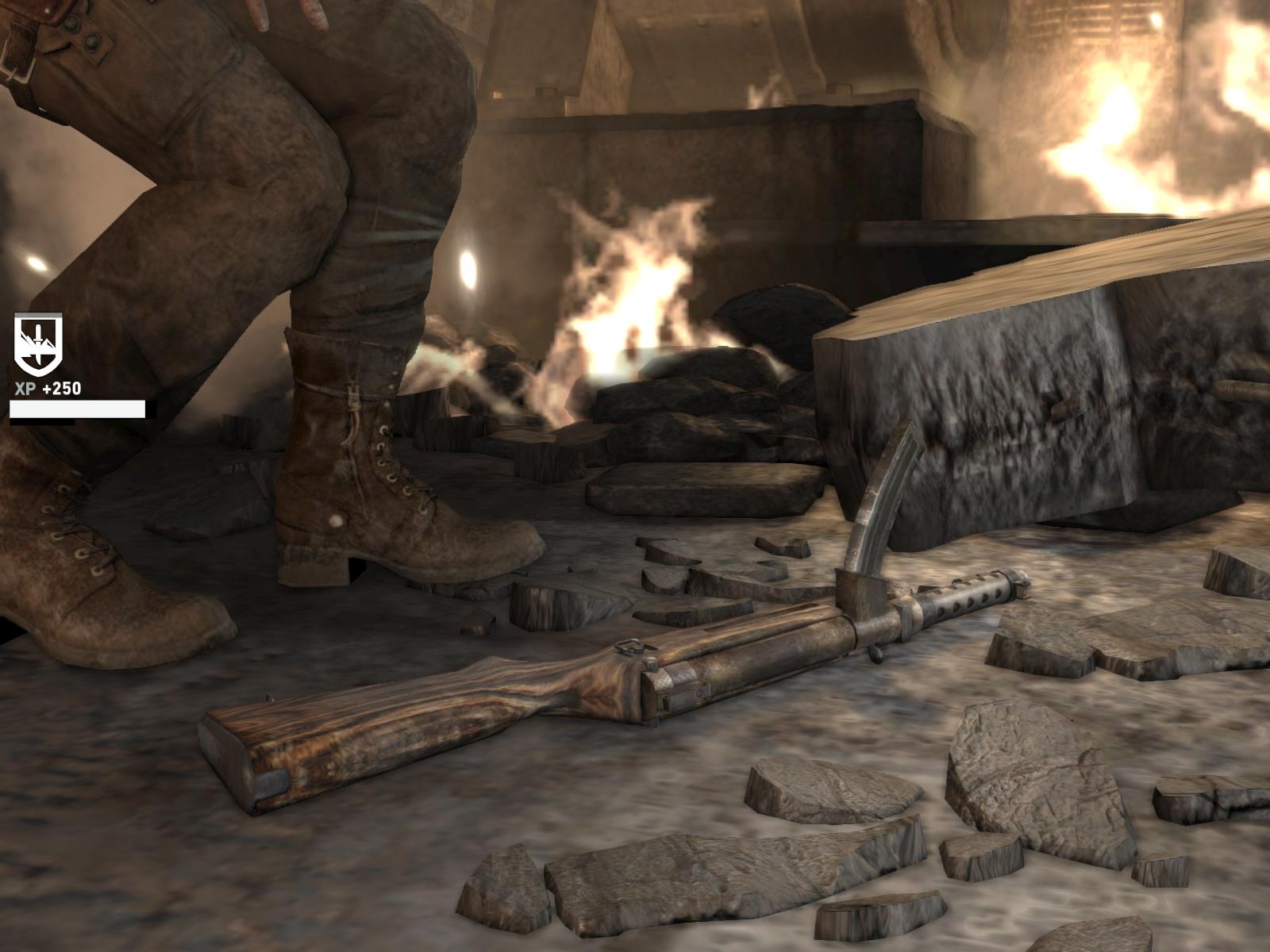 Egy terembe értél. Látsz pár lámpást a földön. Fogd az egyiket, és vágd a fali poszterre. Mássz át a ládára állva a fali résen, és ott is próbáld meg megtekerni jobbra a csapot. Ezt már mindenképpen tekerd meg, nyomogatva az Interactiv gombot. Ezzel nyitod meg a gázt a teremben. Egy ellenség jön szembe, a rácson túl. Gyorsan mássz vissza az előző terembe, mert gázzal lett tele ez a helyiség, fogj egy lámpást, célzás, dobás át a túloldalra. Nagy robbanás, és máris mehetsz tovább. Végezz a sebesülttel, és vedd el a fegyverét, vedd fel az asztalról a dokumentumot. A következő teremben nagy csata lesz, jól jön az új fegyver. Végezz mindenkivel, vedd fel a cuccokat, de az emeletet is kutasd át, hisz a tábor is ott van a sarokban.