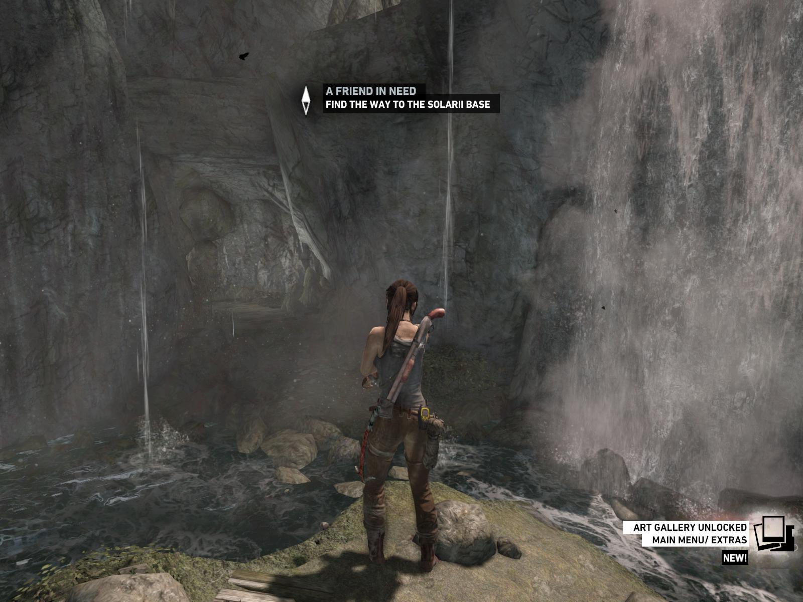 Mássz ki a kis tóból. Menj át a szűk résen, és kiérsz a szabadba. Indulj el először jobbra felvehető utánpótlásért, cuccokért. Majd visszatérve lőj ki egy kötelet a túloldalra. Szedj össze mindent útközben, majd még fentről végezz a három fegyveressel. Juss el hozzájuk, majd ugrás át a házhoz. Lődd be az ajtaját.