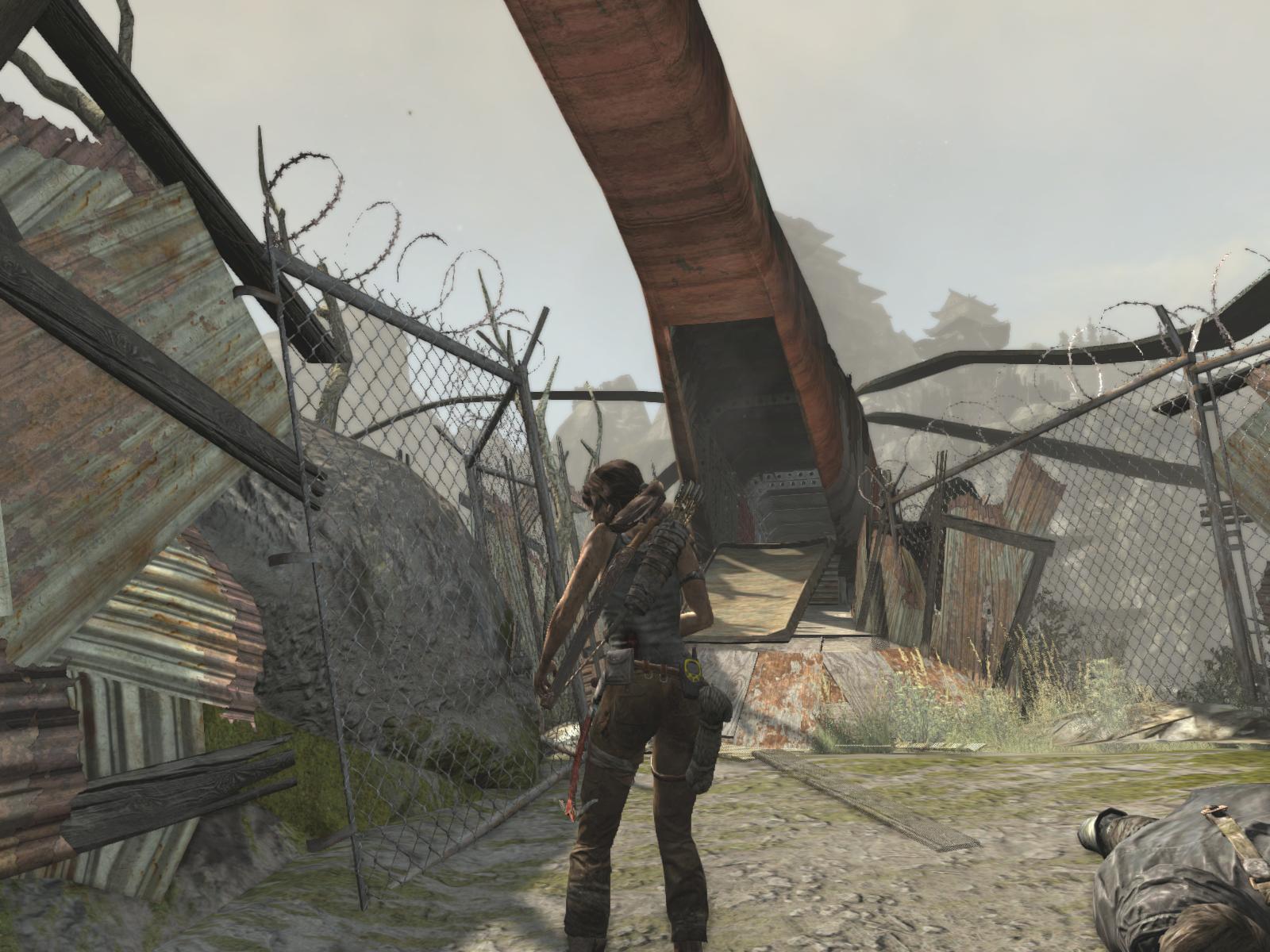Egy kis településre értél. Menj az épülethez, és menj be a csatornába. Menj át rajta, majd kiérve végezz a fegyveresekkel. A házban menj balra, ugord át a leszakad részeket, és végezz az újabb fegyveresekkel is. Köteles nyíllal rántsd ki a lezuhant helikopter ajtaját.