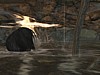 Irány be a zúgó folyóba. Interaktív játék az egész pálya. Nyomkodd a gombokat, hopgy elérje a következő vízben álló oszlopot, majd a másikat, és a harmadikat. No de az kitörik. Az ár elkap, lezúgsz a vízesésen.