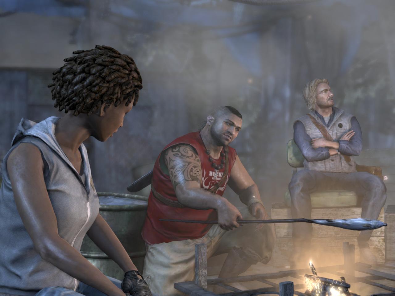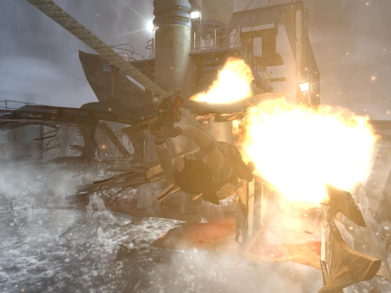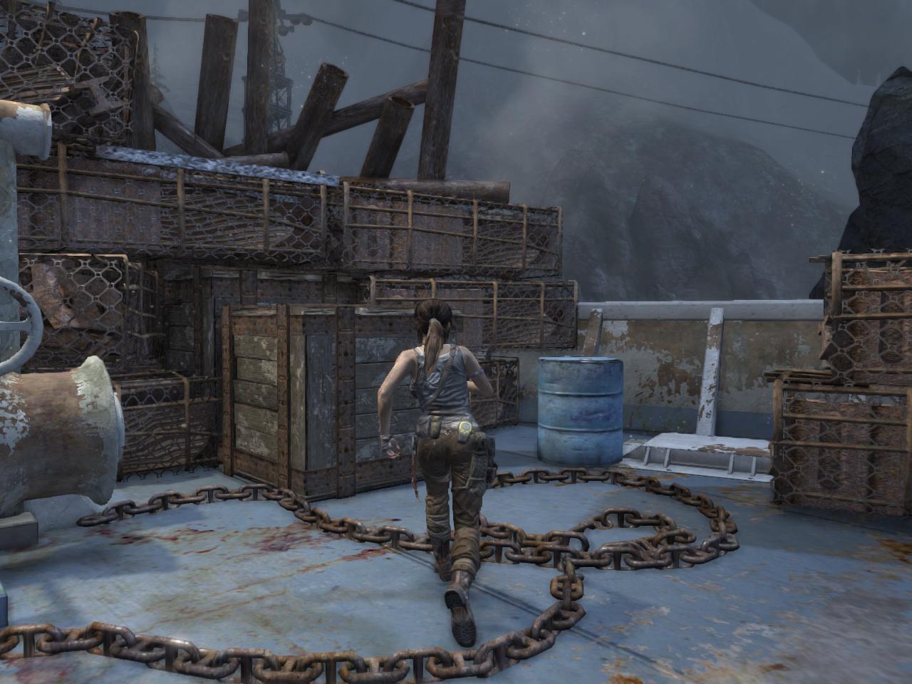 No ha befejezted, szedj össze mindent, majd menj fel a lépcsőn az emeletre. El ne felejtsd a kis asztalról felvenni a 1. Dokumentum-ot. Kis harc lesz az emeleten is, de el ne felejtsd, a piros hordók felrobbannak, ha beléjük lősz, és pár nyamvadékot kinyírnak. Az emeleten menj balra, ki az erkélyre. Ismét pár fickót küldesz a másvilágra, majd átugrasz a túloldalra. Ott jobbra ugorj a rúdra, majd a létrára. Vigyázz, legfelül is lesz pár fickó, de az oszlop mögül simán kampeca nekik. Ugorj a kis liftre, kapd el, kapaszkodj át a jobb oldalára, onnan már felmászhatsz ki, a szabadba. Vegyél fel mindent, majd ugorj le a roncs teherautóhoz. Menj be mögé, mert egy relikvia van ott, a tábortűz mellett pedig a 2. Dokumentum. majd lőj a szemközti sziklába egy kötelet, és csússz át. Most már láthatod közelről a nagy teherhajót, amivel idejöttél.