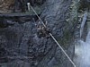 Most már a köteleken átmászva, a sziklarésen át, juss vissza az előző pályára.
