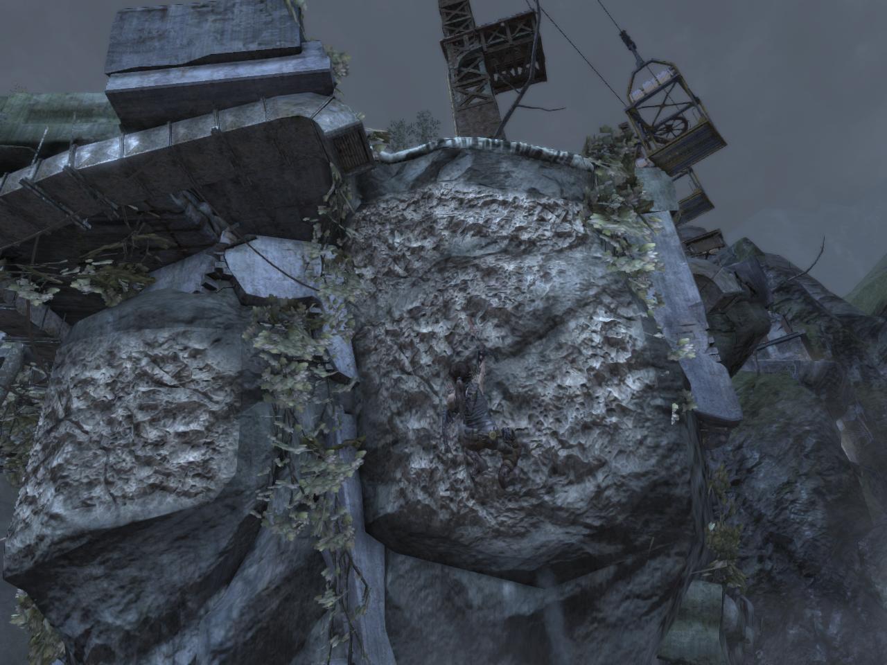 Menj egészen hátra a parton, találsz egy kerítéssel körbevett felvonót. Kötéllel tépd ki az ajtaját, és a karral, nyomogatva az Interact.ot, lezuhan a lift. Mássz fel mögötte a falon, majd a szemközti sziklafalba lőve egy kötelet ismét továbbjutsz. Persze oldalazni is kell, de hát az adja magát nemigaz? :)