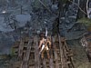 Menj kicsit lefelé a parton, és meglátod egy falon a sír jeleit. Rántsd ki a kötelescsigával a falat, és menj be. Menj végig a sziklafolyosón, a folyónál köteles nyíllal juss át, és elérsz egy barlangba. Itt Az a feladat, hogy feljuss a magasba. Először is tekerd meg a kereket, ez felemel egy liftet, és átúszik alatta egy hordó. Engedd el a kereket, és mássz fel balra gyorsan. Amikor az oszlop úgy fordul, hogy kapsz egy vízszintes rudat, ugorj rá, és átjutsz a túloldalra. Na most kell gyorsnak lenned. Jobbra lent, lőj egy kötelet az oszlopba, és elfordítod. Azért kell sietned, hogy lent, az úszó hordó továbbforgassa. Ha késlekedsz, és előbb elúszik lent a hordó, kezdheted az egészet előröl. No ha sikerült, és az úszó hordó továbbforgatta az oszlopot, megint van egy vízszintes rudad. Ugrás rá, majd elkapva a mászófalat feljutsz a magasba, és meg is találtad a kincset. Most már juss ki a sírból a tengerpartra.