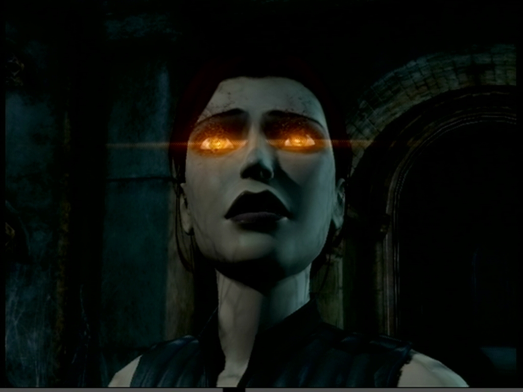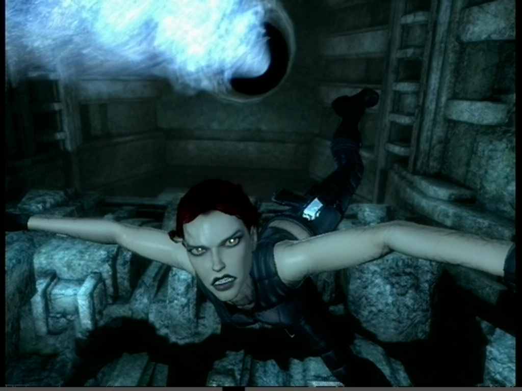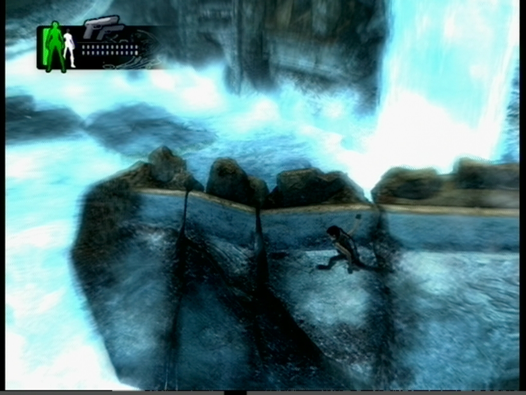 Ha ezektol csak elterül a thrall de nem hal meg, akkor a jól megszokott módszer szerint ugorjunk rájuk. Jön egy nagyobb is, aki eltakarítja a folyosót elzaró törmeléket, majd miután vle is végeztünk, menjünk ki, majd a thrallok kivégzése után le a lépcson. Itt a fali repedés mellett balra ereszkedjünk le, oldalazzunk balra az újabb kincsért. Vissza, fel a repedésen, jobbra perem, repedésen fel, majd a túloldalon essünk le. Egy méreg zuhatag gátolja az utunkat. Amikor az árnyék erot nyomva tartjuk, akkor gyakorlatilag az idot is lelassítjuk, így könnyedén átjuthatunk itt is. Csússzunk le a lejton, idelent öljük meg a thrallt, majd bal szélen vegyük fel a kincset. Jobbra tovább, újabb lassítás és egy ugrás az újabb "méregesés" alatt, majd video következik, találkozunk egy ismeros személlyel. (Engem személy szerint nagyon meglepett, az alap játék gyakorlatilag a kiegészítok nélkül befejezetlen és kissé hiányos.) Többek között az is kiderül, hogy mi is tudunk beszélni, csaknem ugyan olyan hangon mint Lara.