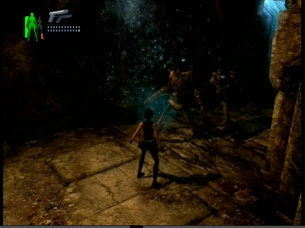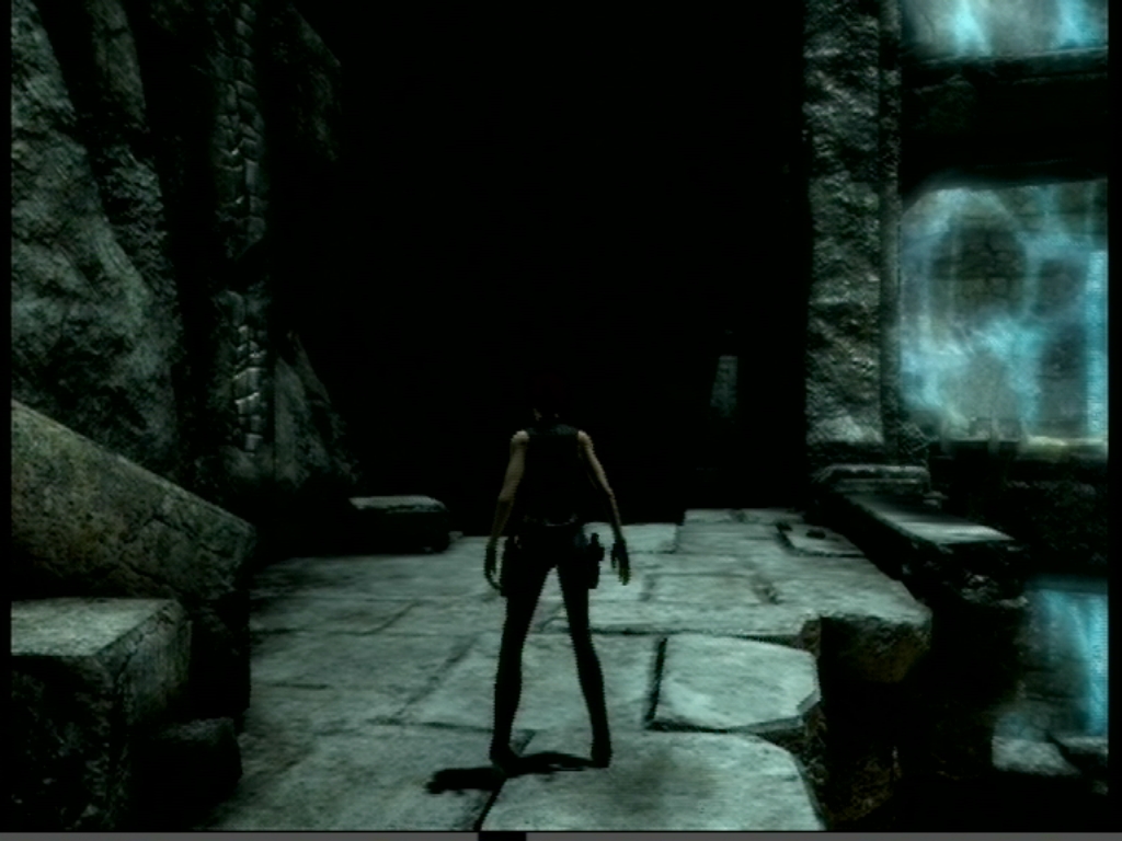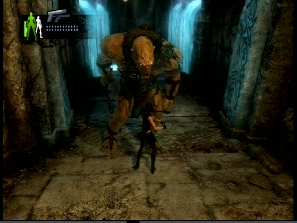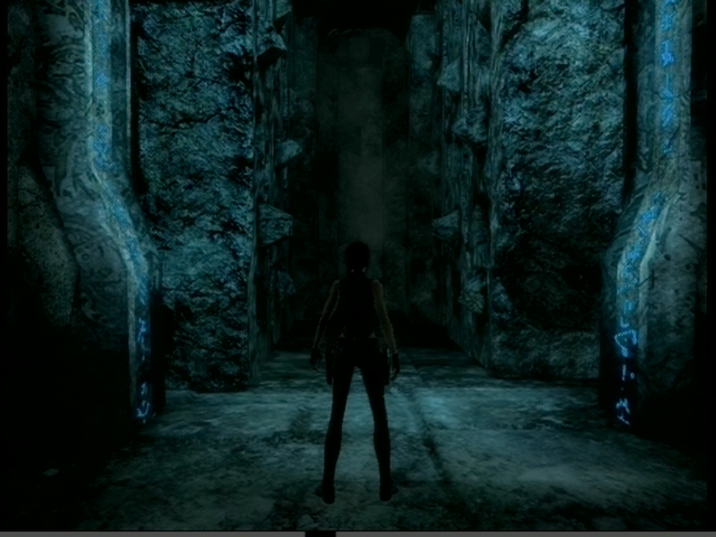 Kezdjünk el kijutni innen, szaladjunk a fali repedéshez, nyomjuk az árnyék erot, és szaladjunk felfelé. Az erot folyamatosan nyomni kell amíg a repedésrol egy fixebb területre vagy peremre nem ugrunk. Itt perem, balra újabb repedés, platform, repedés, perem, repedés és fent is vagyunk. Menjünk a bal sarokban lévo oszlop mögé és vegyük fel az elso kincset. Mehetünk jobbra tovább, csússzunk le, a folyosó többé kevésbé ugyan olyan mint amikor Larával jártunk itt. Az elso kanyar elott vegyük fel jobbra az újabb kincset. Amint egy újabb kanyarhoz érünk, ránk támad egy thrall, akit most tudunk ütni, rúgni, loni valamint ezeknek látványos és eros kombinációit alkalmazni, miközben nyomjuk az árnyék erot és mondjuk a rúgást, avagy a lövést.