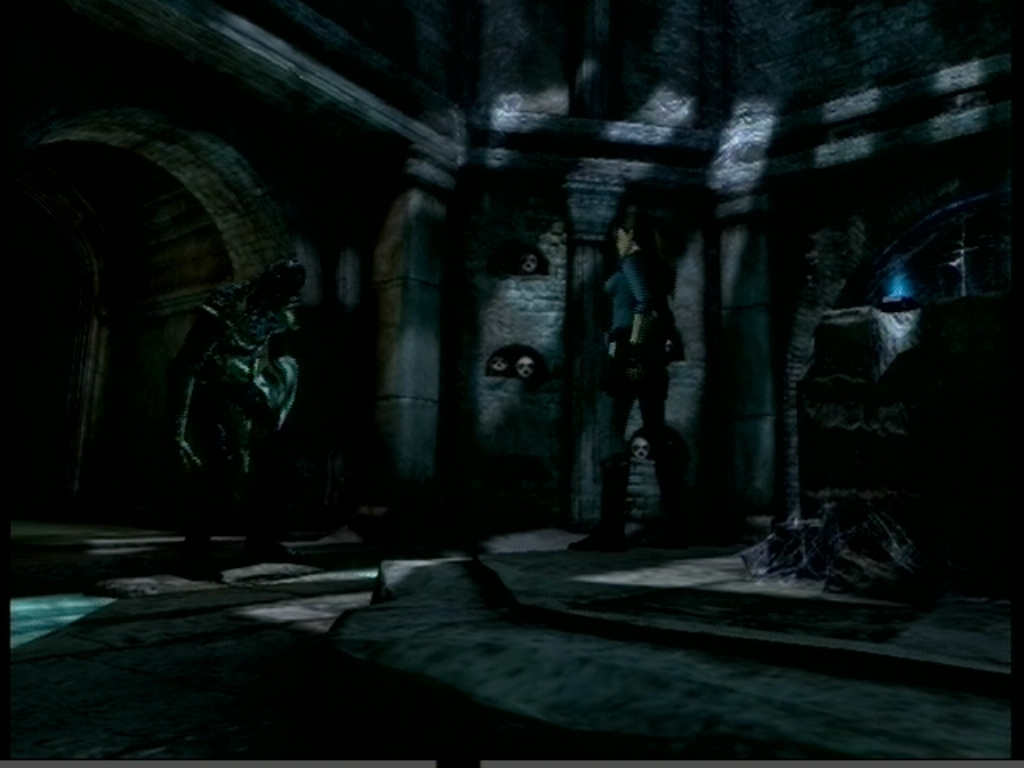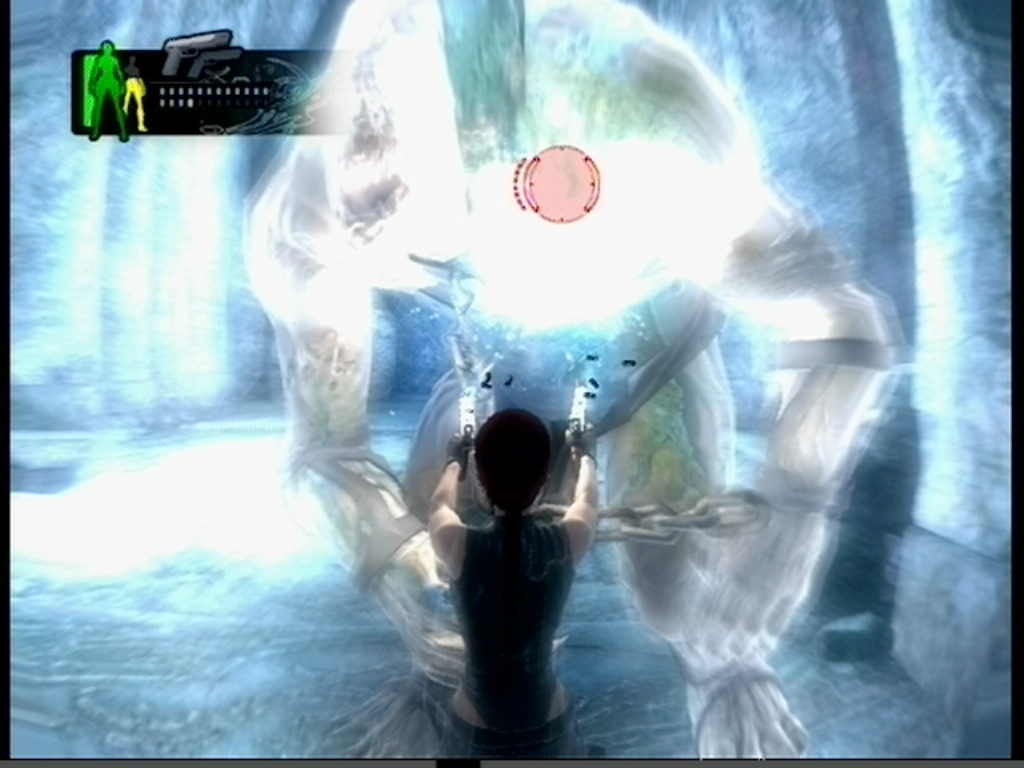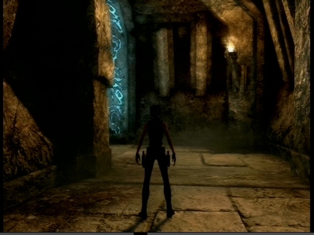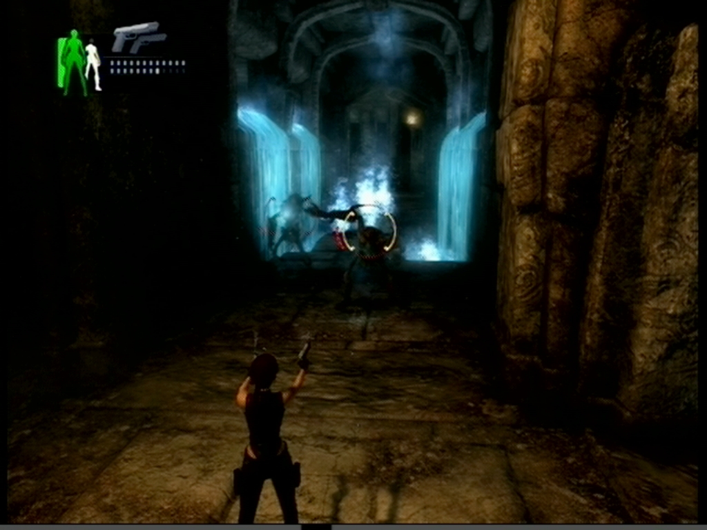 Kezdjünk el kijutni innen, szaladjunk a fali repedéshez, nyomjuk az árnyék erot, és szaladjunk felfelé. Az erot folyamatosan nyomni kell amíg a repedésrol egy fixebb területre vagy peremre nem ugrunk. Itt perem, balra újabb repedés, platform, repedés, perem, repedés és fent is vagyunk. Menjünk a bal sarokban lévo oszlop mögé és vegyük fel az elso kincset. Mehetünk jobbra tovább, csússzunk le, a folyosó többé kevésbé ugyan olyan mint amikor Larával jártunk itt. Az elso kanyar elott vegyük fel jobbra az újabb kincset. Amint egy újabb kanyarhoz érünk, ránk támad egy thrall, akit most tudunk ütni, rúgni, loni valamint ezeknek látványos és eros kombinációit alkalmazni, miközben nyomjuk az árnyék erot és mondjuk a rúgást, avagy a lövést.