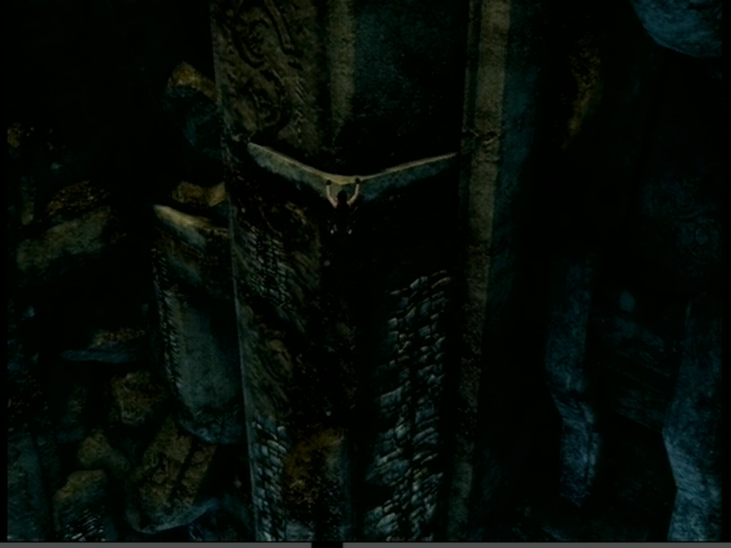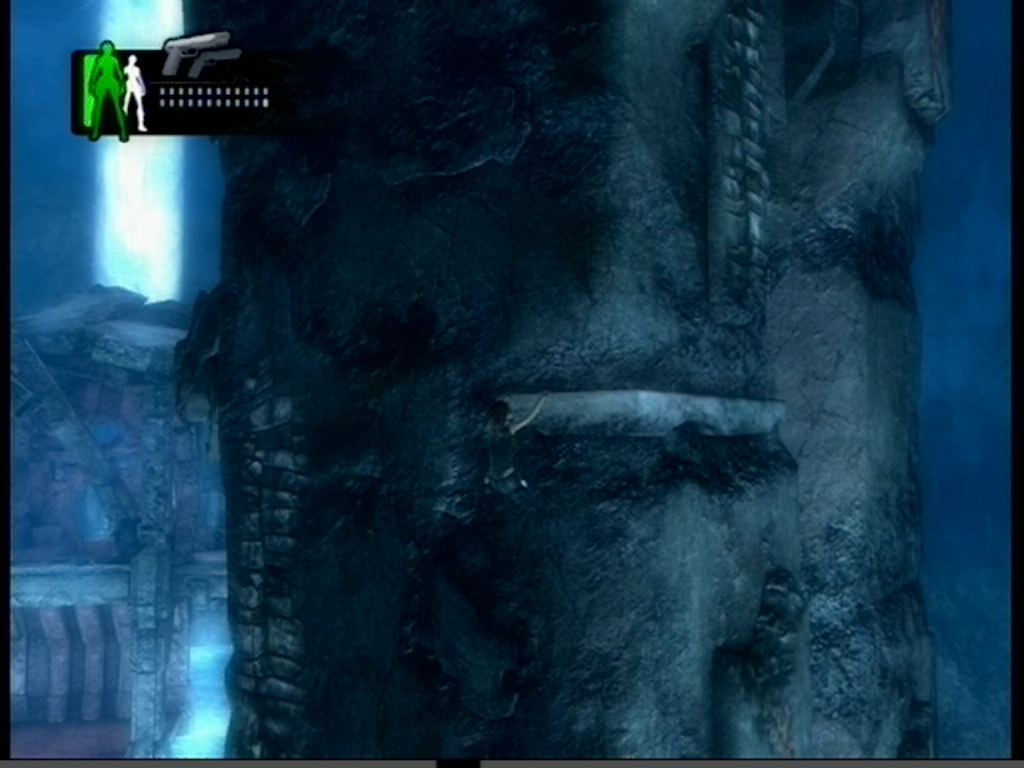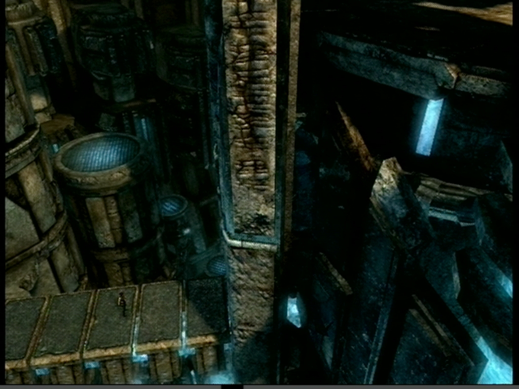 Balra induljunk ahogy korábban is, ugorjunk a repedésre, de gyorsan mert már mozog a fal, majd a a tetején, mikor ütközésig ért, ugorjunk fel róla a peremre, innen pedig hátra. Útközben thrallok, tovább haladva újabb fel-le mozgó fali repedés, amirol ugyancsak feljebb ugorjunk a peremre, ennek a bal szélérol ugorjunk el. Amit ez elott kinyitottunk "méregcsapot" most el kell zárnunk, tegyük is ezt meg, jussunk fel a kígyófejig, majd zárjuk el. Az elso csatorna inaktív, be tudunk menni a szerkezet belsejébe. Ha beértünk, vigyázzunk a villámokkal, idolassítással jussunk be hátulra, ugorjunk fel a peremeken majd árnyék ero+ X lenyomásával üssünk bele a sárga fém körbe. A kamera megmutatja merre kell mennünk, induljunk is el, útközben vegyük fel a kincset a mozgó ko elol, majd ha eljutottunk a fali repedésh ez, fent hasonlóan zárjuk el a kígyófejjel a csapot mint az imént, ezzel újabb csatornát tettünk inaktívvá, ismét be tudunk menni a szerkezet belsejébe, az inaktív csatorna tetejérol most ugrani kell egyet és bent vagyunk. Itt is jussunk át a villámokon, hátul fel a peremeken, fémkor szétüt, mögötte kincs.