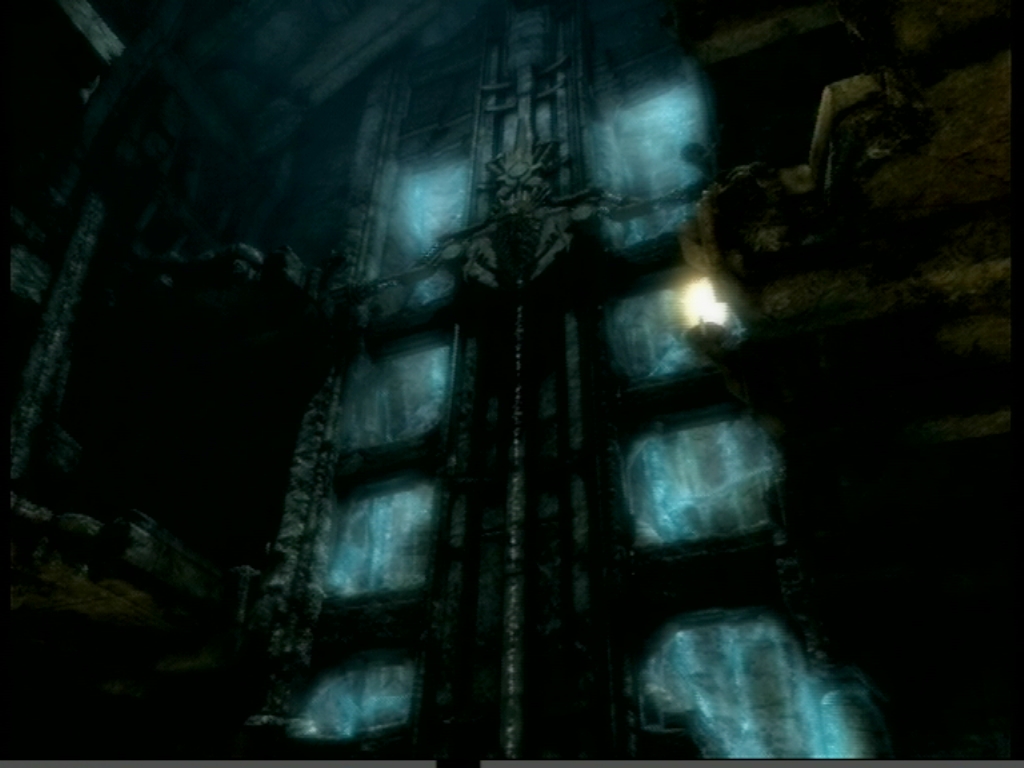 Útközben persze mindig öljük meg a thrallokat, egyirányú a folyosó, menjünk végig rajta, majd egy lecsúszás után ugorjuk át az eitr-el teli gödröt, haladjunk tovább, majd ugorjunk az itteni folyosó végén a bal falon lévo repedésre, fel rajta, és itt jussunk fel a fentebb lévo szintre. Haladjunk itt is folyosó szerint, jussunk át a peremek segítségével a túl oldalra, viszont amelyik peremrol elugrottunk, nézzünk gyorsan mellé, balra és vegyük fel a kincset. Menjünk le a lépcson, balra a sötét zugban újabb kincset találunk. Menjünk tovább jobbra, ugorjunk a fali repedésre, csússzunk le rajta, majd ugorjunk el róla balra az újabb repedésre, aztán párkány, újabb repedés és fel. Itt az eitr-bol felemelkednek platformok, amiken idolassítással tudunk átjutni, majd a másodikról jobbra felugrani a repedésre, és így a túl oldalra. Menjünk tovább és kiérünk a "finomító" terembe, az elso nagy szerkezethez.
