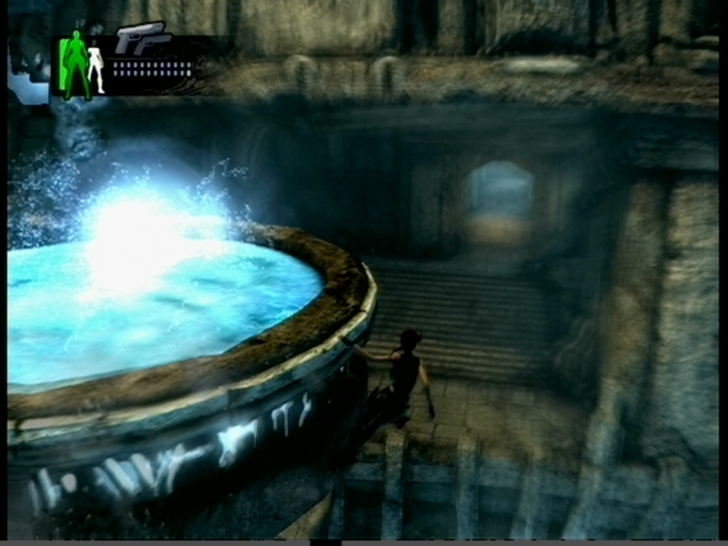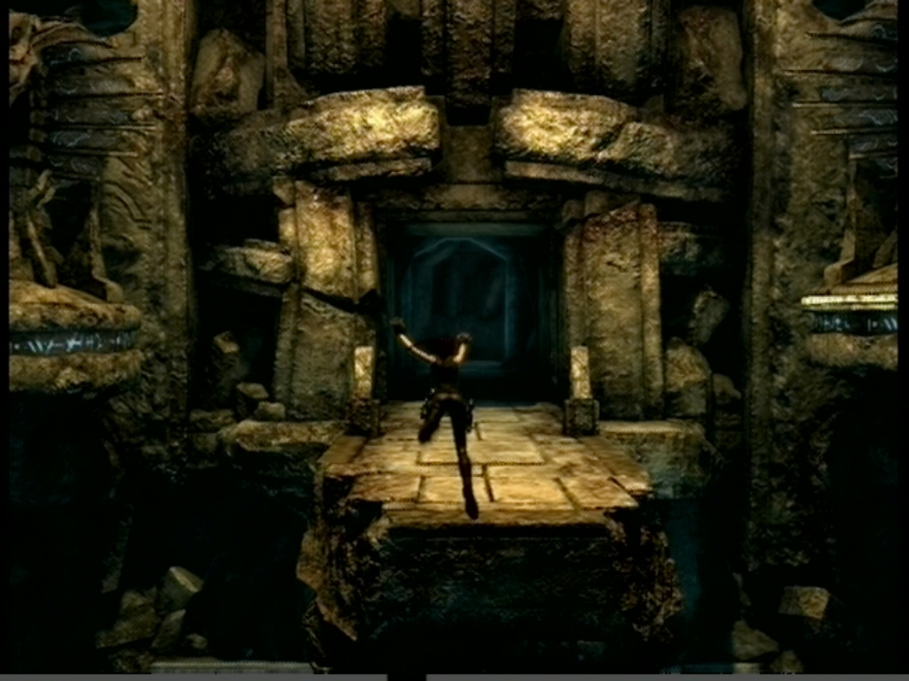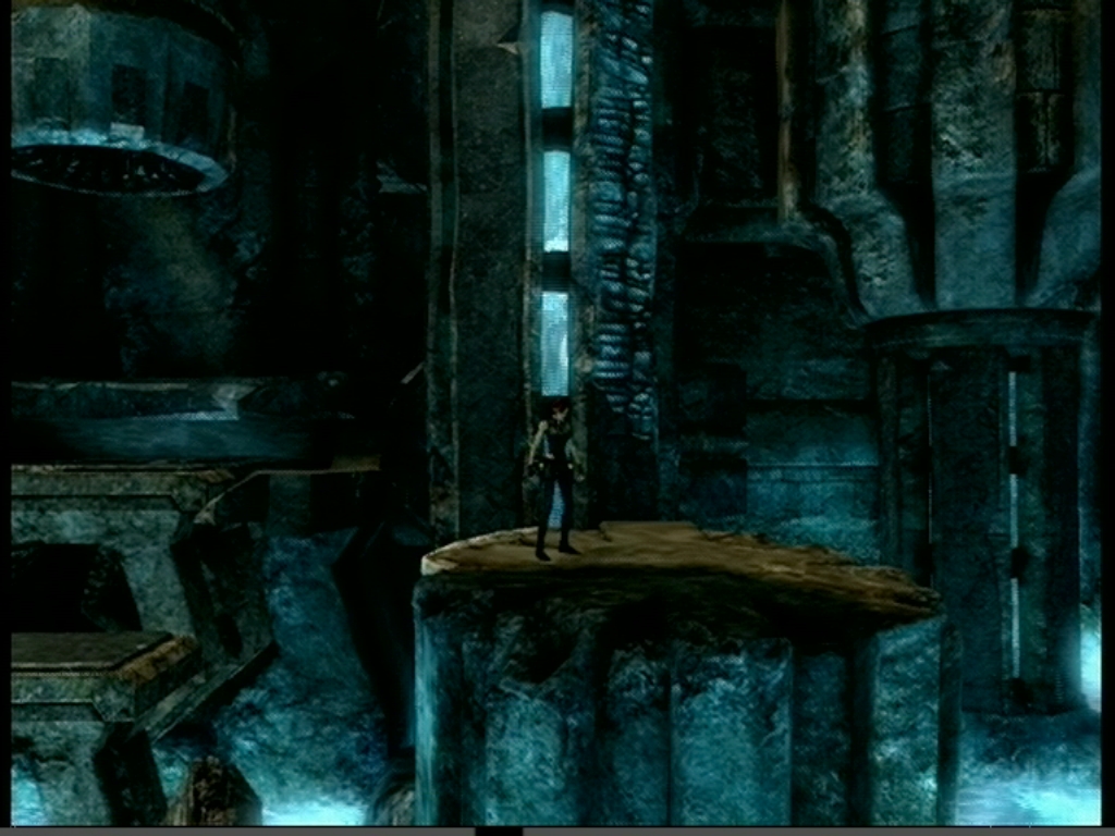 Menjünk ki, a kamera megmutatja merre tovább, menjünk is arra. Itt is egy csap található, amit legeloször nyitottunk ki, most zárjuk el, ezzel az utolsó csatorna is visszahúzódott, utoljára menjünk be a szerkezet belsejébe és itt is csináljuk meg ugyan azt amit az elozo két alkalommal. Amint kijövünk, a nagy oszlop lezuhan. Vele együtt egy nagy ko is, amire ráugorva elérheto egy újabb fali repedés, amin szaladjunk fel, majd újabb perem, errol hátra, oldalazzunk ki, majd innen is hátra, így egy kígyófej csapon landolunk, amit ütközésig húzzunk is be, ezzel el zárjuk egy nagyon rövid idore az oszlop tetején kicsapódó gázt, gyorsan fel a teteére, ugorjunk rá az újabb kígyófejre, ezt is húzzuk be ütközésig, majd újra fel a következo oszlopra, ennek a tetején meg állhatunk. Innen eloször ugorjunk jobb ra, a fel-le mozgó kövek alá. A középso ko oldalán van repedés és perem, erre ugorjunk rá, majd errol ugorjunk hátra az elso tetejére, errol vissza a középso tetejére, de gyorsnak kell lennünk, ne várjuk meg míg teljesen fel nem megyünk vele a plafonig mert csúnyán végezzük. Érdemes az oszlopok tetején is lassítani az idot. Szóval a középso oszlopon vagyunk, a megfelelo idoben a harmadik oszlop tetejére ugorjunk át, ahol fel vehetjük az újabb kincset. Innen leeshetünk, vissza a rácsos teteju oszlopra, errol most már mehetünk fel a repedésen, fel a peremre, oldalazzunk ki balra, essünk le, másik repedésen fel, perem, oldalazzunk ki balra, le a másik rácsos teteju oszlopra, ugorjunk át a másik három fel-le mozgó kohöz. Az elso oldalán van belül repedés és perem, hasonlóan ahogy az elozonél, erre ráugorva, majd errol hátra ugorva a középso korol elugorva kapjuk el a harmadik ko feletti peremet, amin oldalazzunk balra, majd egyel lejjebb, megint oldalazzunk balra majd ugorjunk hátra.