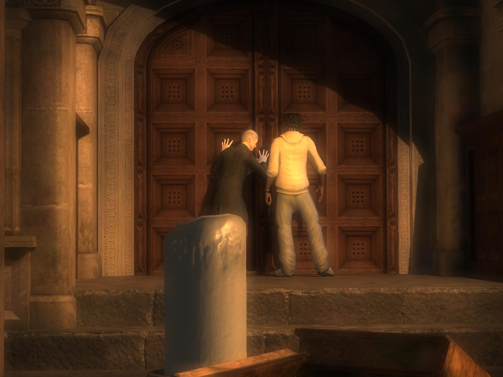 Az erkély végén jobbra fordulj, ugorj, közben csáklyázd meg a fémgyûrût, majd a lendületbõl átugorhatsz a szemközti erkélyre. Kapaszkodj ott le a törött korlátnál, és ess le az ajtó elé, ahol már tolonganak a menekülõ emberek.